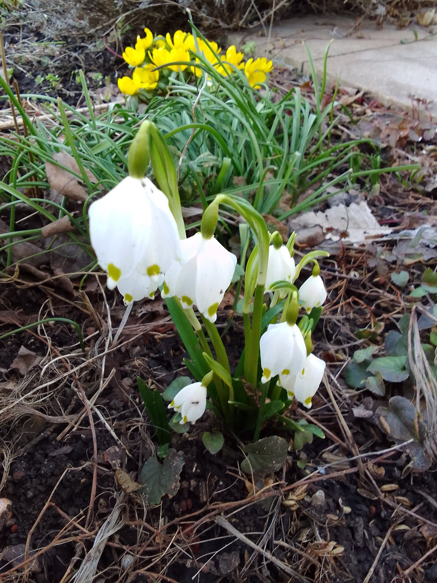 Diverse Leucojum vernum ! Ich denke jetzt ist eine gute Zeit für die Entnahme von cca. 10 Pflanzen und "in the green" an schattigen Stellen unter Bäumen einpflanzen.