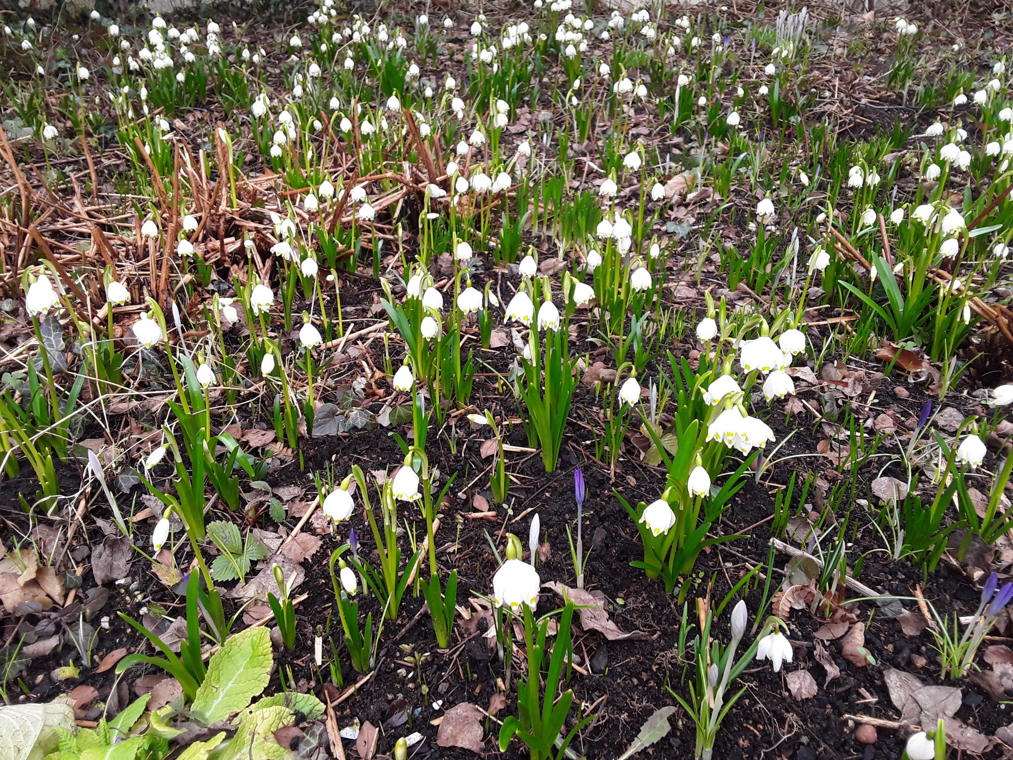 Diverse Leucojum vernum ! Ich denke jetzt ist eine gute Zeit für die Entnahme von cca. 10 Pflanzen und "in the green" an schattigen Stellen unter Bäumen einpflanzen.