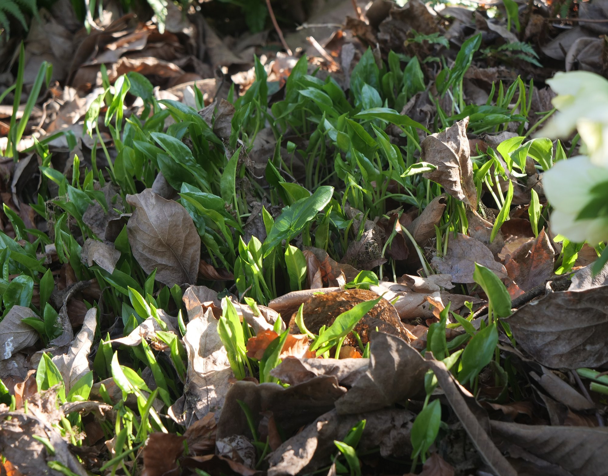 Bei Arum italicum haben die ersten Blätter unter dem Schnee gelitten. Diese habe ich entfernt. Daher kein schöner Anblick. Ich hoffe, sie schieben bald neue Blätter nach.