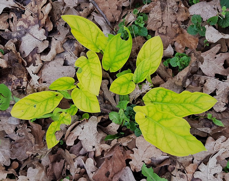 Arum maculatum? Weit und breit stehen nur italicum und die Blattform ist auch irgendwie anders: sehr breiflächig und auch für maculatum groß. Was meint ihr?