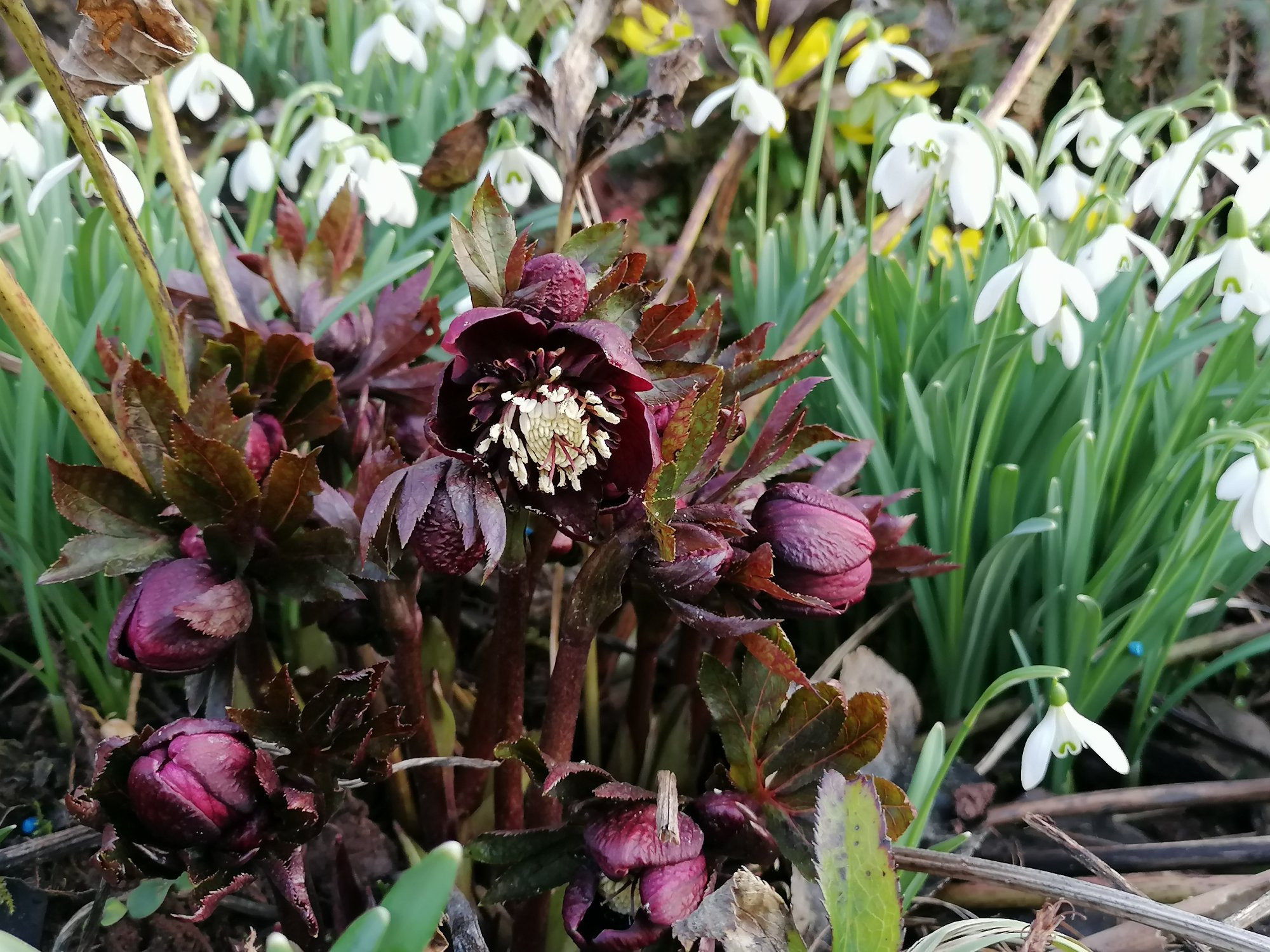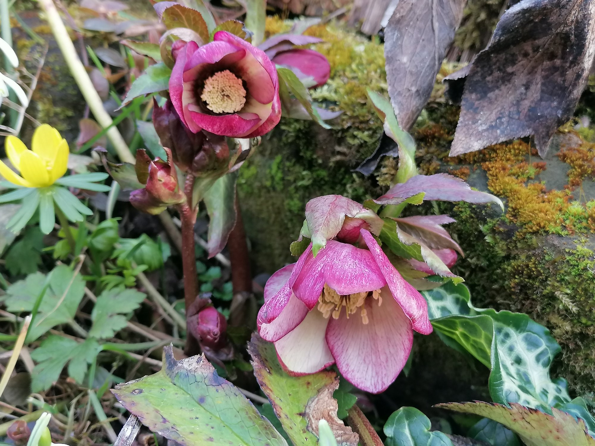 Viel mehr Spaß machen hier die wilden und Helleborus x hybridus.