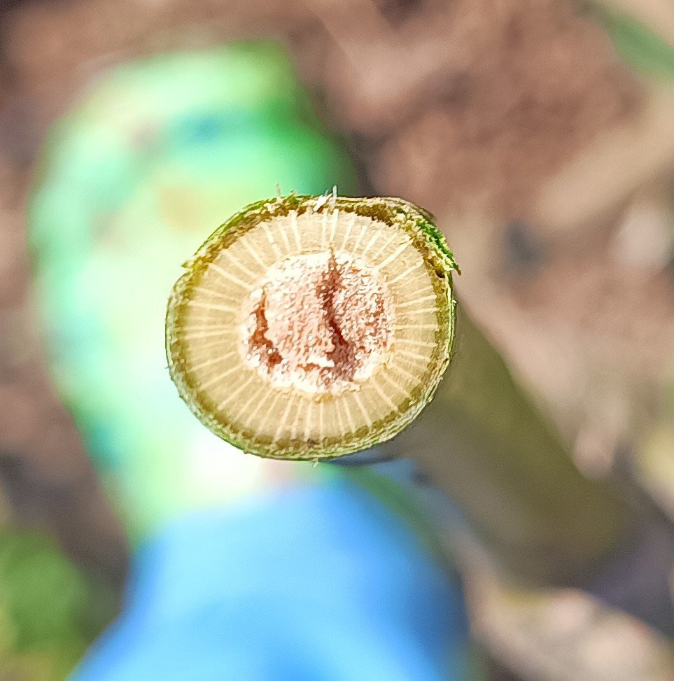 @Anke 02:Wenn das Mark verfärbt ist, handelt es sich um einen Frostschaden. Ich schneide in einem solchen Fall soweit zurück, bis das Mark weiß ist. Der Frostschaden kann auch von einem Spätfrost kommen.