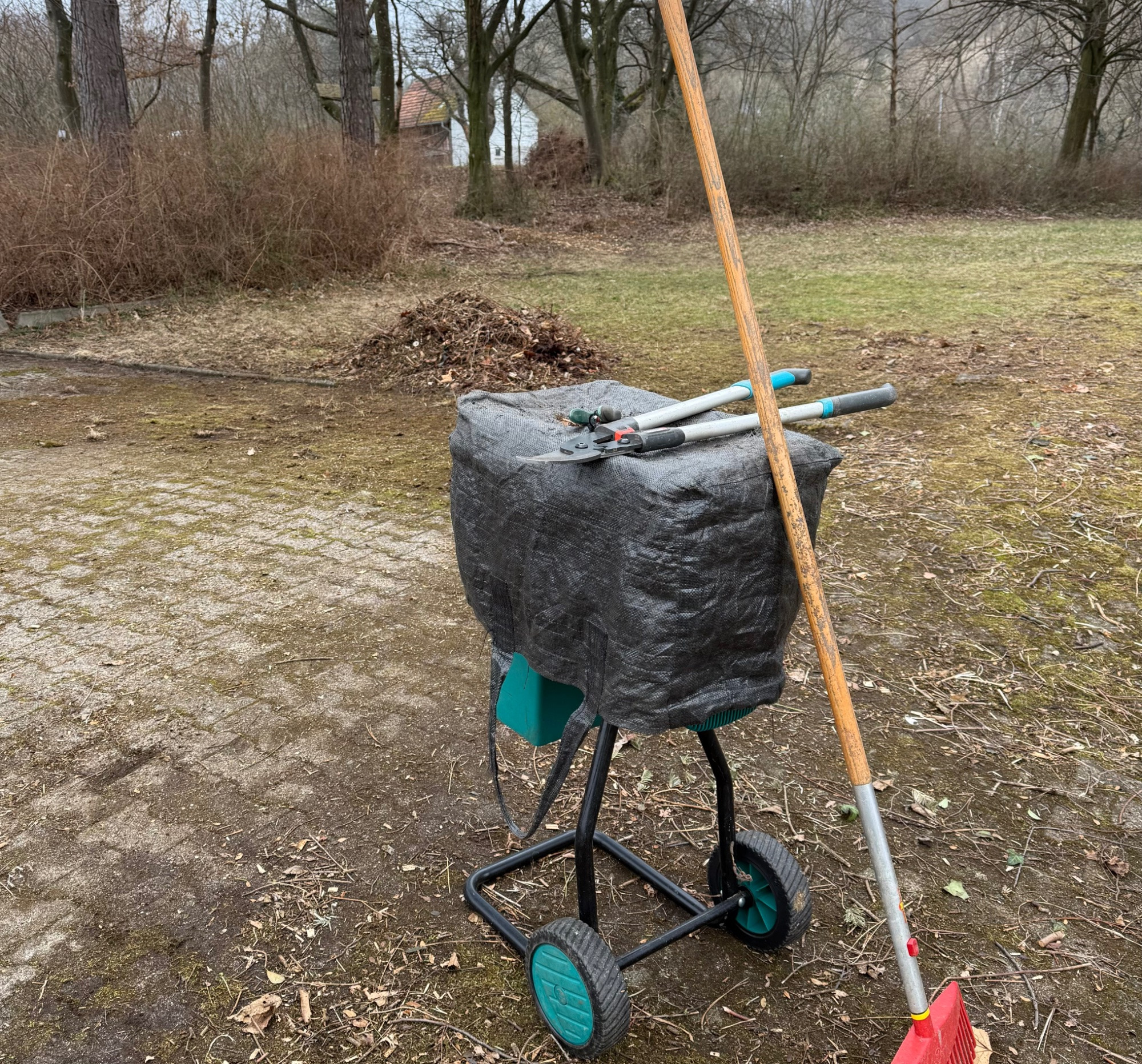 Habe Töpfchen zu Seite gestellt und Häcksler rausgeholt. Zwei Stunden gehäckselt. Das Ende ist in Sicht. Wenn Morgen nicht regnet, häcksele ich weiter.