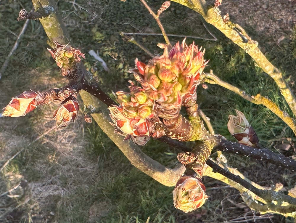 Vielleicht noch eine vorwitzige Knospe aus dem Herbst, welche den Winter überstanden hat?
