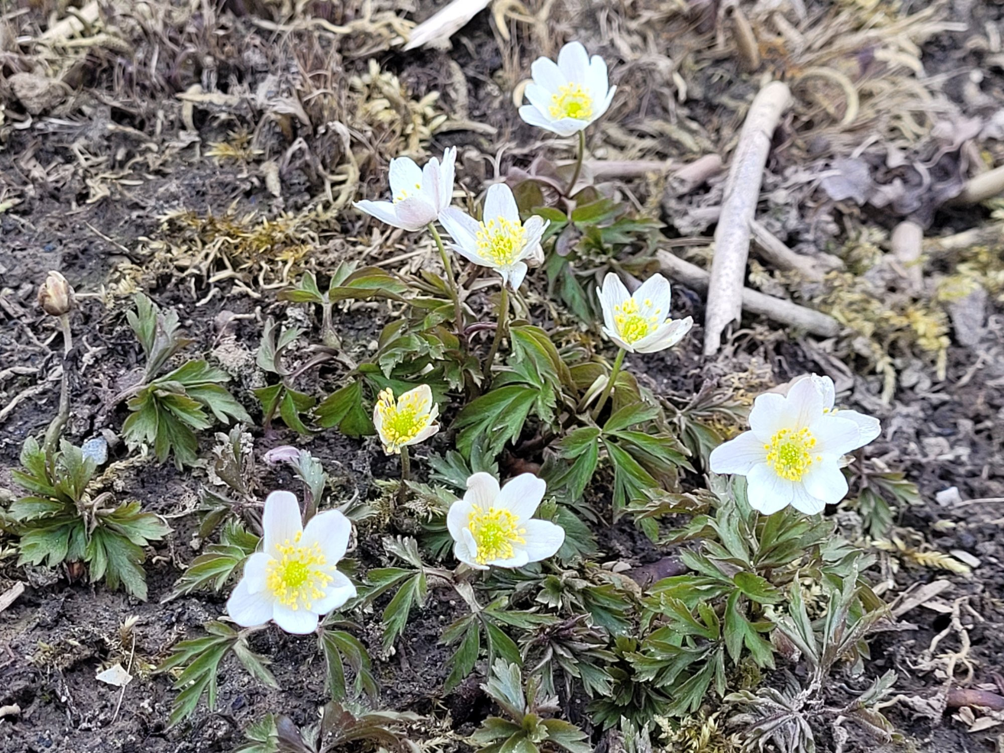 Aber die neue Fläche mit den Buschwindröschen im Strauchbeet macht sich ganz gut... es sind inzwischen ganz schön viele. Hier nur Ausschnitte... es sind schon deutlich mehr.