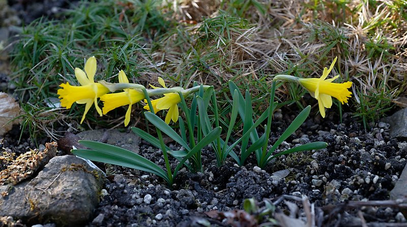 Im vergangenen Jahr blühten um diese Zeit schon Narzissen, im Moment sind noch alle Knospen geschlossen, auch die der kleinen Tête-à-Tête.