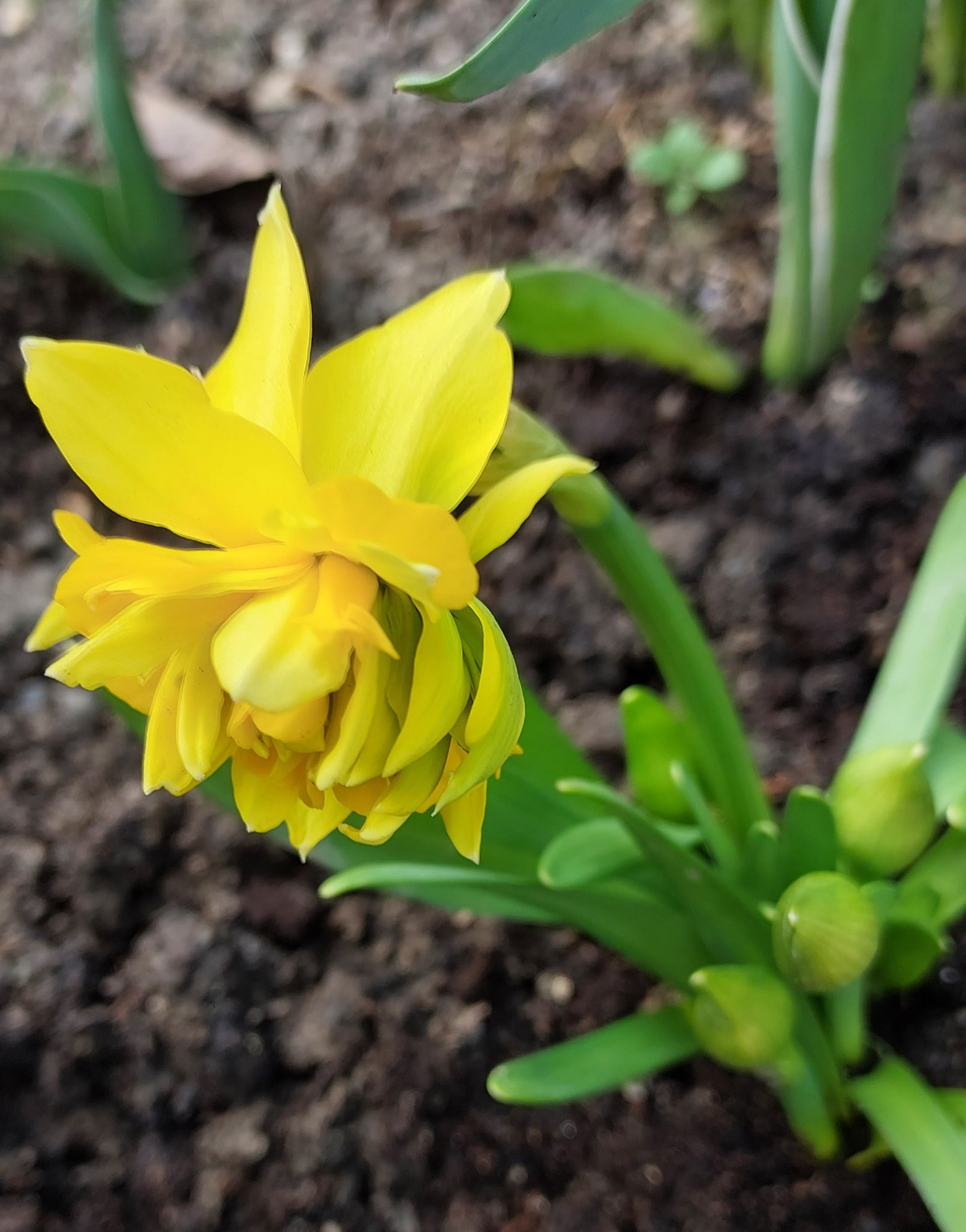 Die Massenaspekte finde ich bei Narzissen immer sehr klasse, da ist auch nicht weiter schlimm das gelb nicht die aufregenste Farbe ist: in diesem kleinen Frühblüherstreifen fängt Te A Te langsam anzublühen auch die Korkusse sind noch zahlreich: Witzig finde ich, das durch die Kühle die Carlton's teilweise sehr niedrig sind, ihre Blüte ist aber trotzdem gleichgroß wirkt so unbalanciert: Statt Schleimer waren es dieses Jahr Menschen die auf dem Austrieb rumgetrampelt sind.. weil es kalt war waren es lange nur Spitzen die ruasschauten und die waren dann wohl unaufällig genug das man drüber gelaufen ist