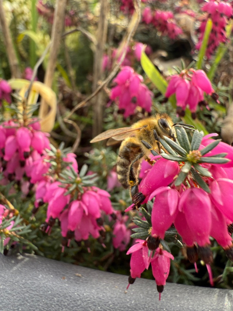 Die weißen Erica scheinen weniger beliebt zu sein bei den Bienen als die roten