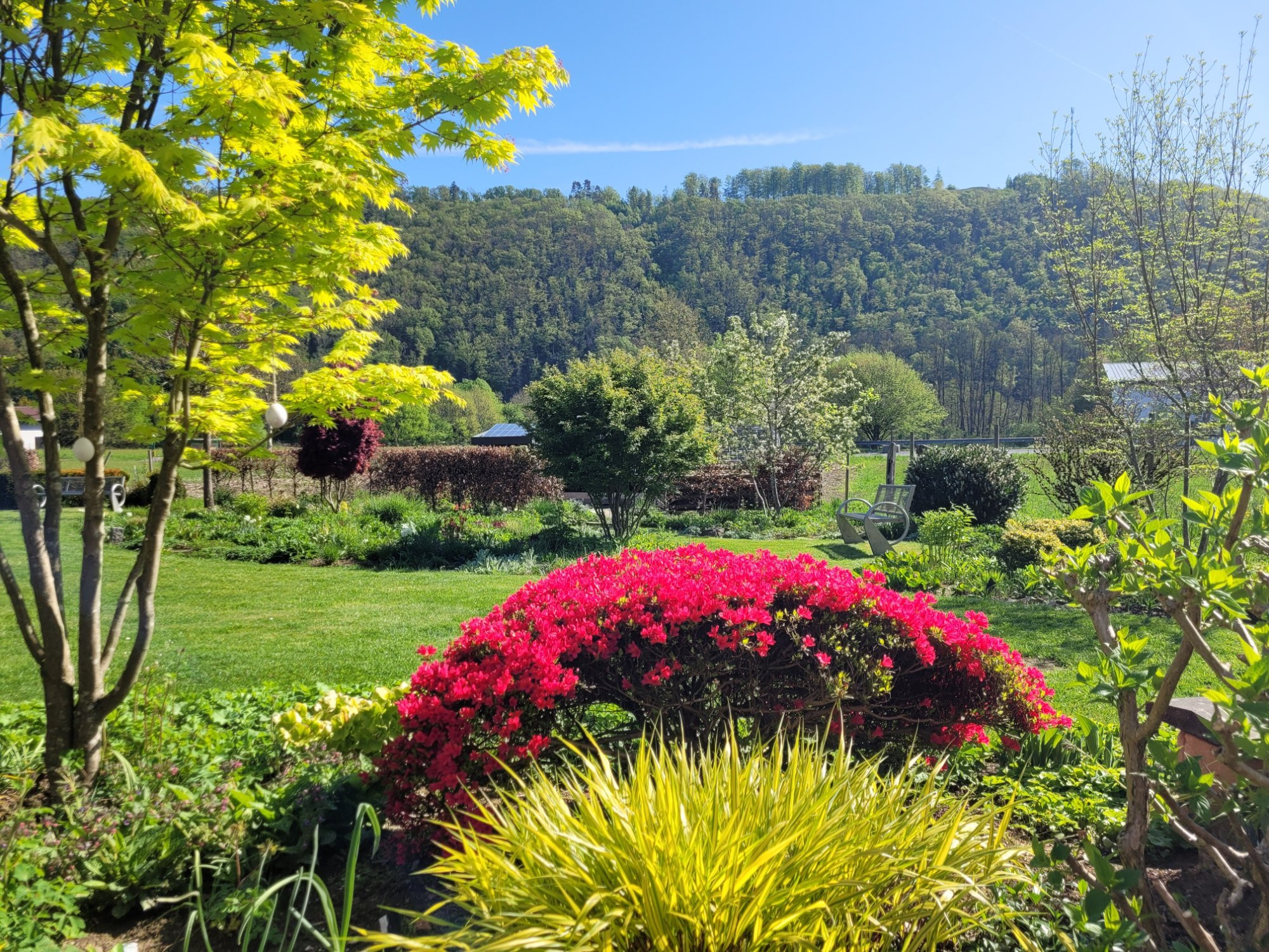 Abgesehen von der knallbunten Azaleen Ecke geht es hier noch sehr ruhig zu... allerdings überall mit üppigem Grün.