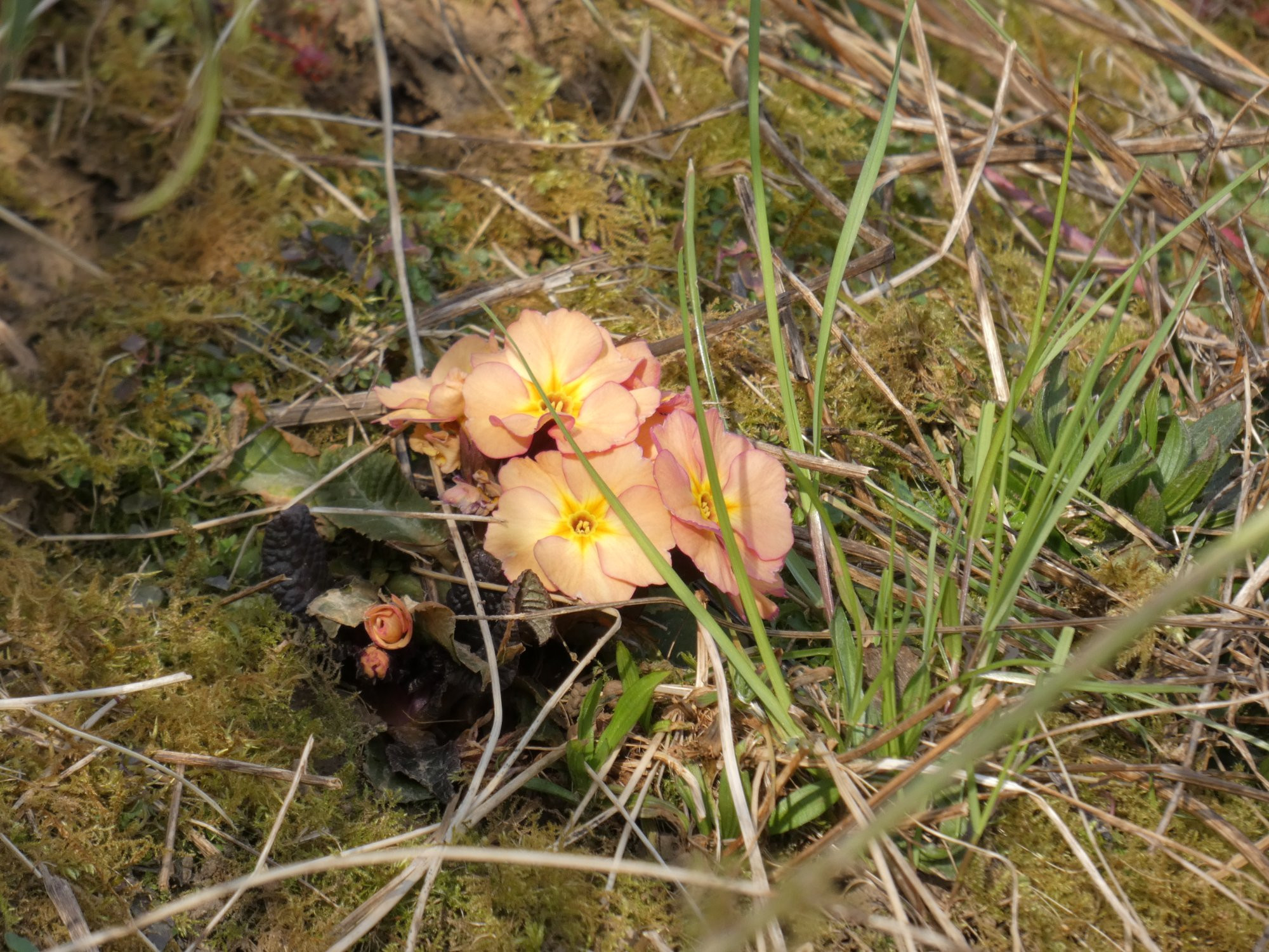 Auf meiner Wiese blüht immer noch nicht alles, es ist dort wirklich deutlich kühler als am Haus, obwohl nicht weit weg, sogar fußläufig erreichbar. Bspw. die `Barnhaven Blue´, waren heute Morgen alle am Leben, aber noch knospig. Ein paar bunte Flecken gibts jetzt dennoch, Vorjahresstroh muss ich künftig halt besser wegräumen. Manche großblumige Primel wirkt ein wenig fehl am Platze, das wird sich künftig hoffentlich geben, ich will halt farbliche Vielfalt weswegen ich ein breites Spektrum hingeworfen habe- Wildform, Sibthorpii, Obsidian+Fehlfarben, sonstige aus Frühlingstöpfen, Gartenprimeln... Manche haben sich schon verabschiedet, das Allermeiste ist aber noch da.