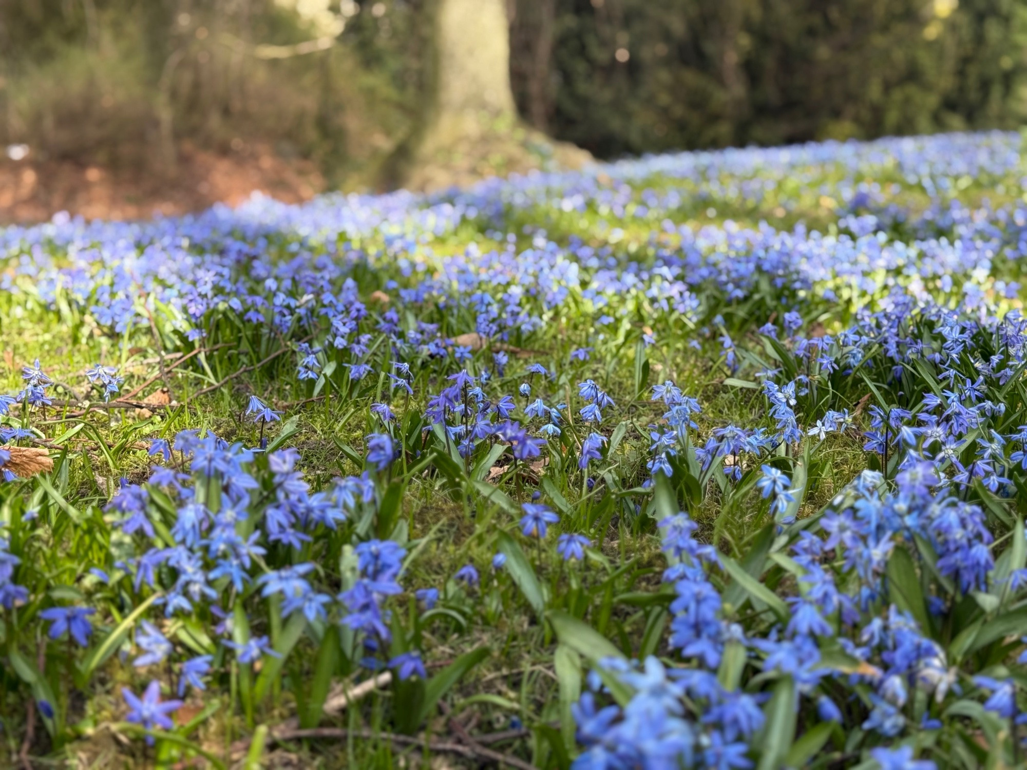 Im Park machen sich an einer Ecke Scilla bifolia breit. Es hat über zehn Jahre gedauert, aber jetzt rollt die Invasion los.