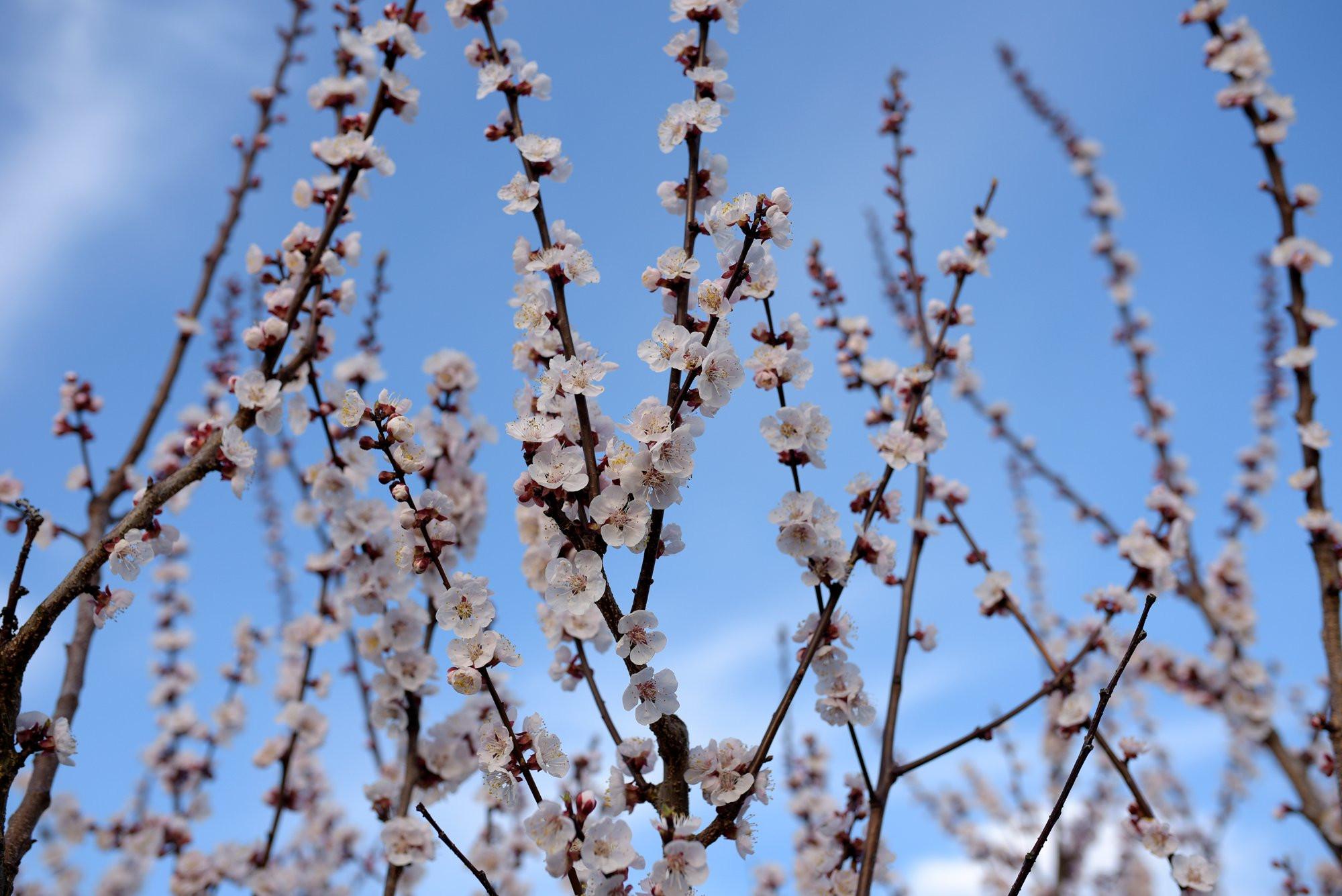 In den Obstkulturen des Nachbardorfs stehen heute die Aprikosenbäume bereits in Vollblüte.