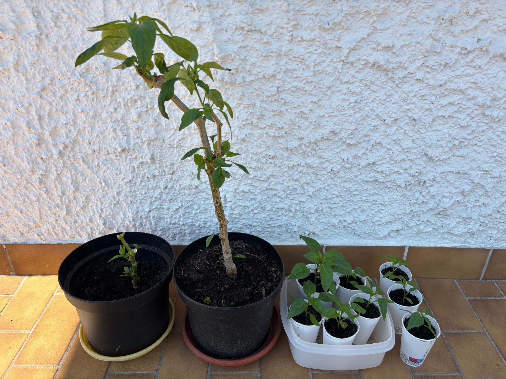 Die überwinterten Paprikas machen sich echt gut. Die große hat bereits mehr als zehn Blütenansätze.
