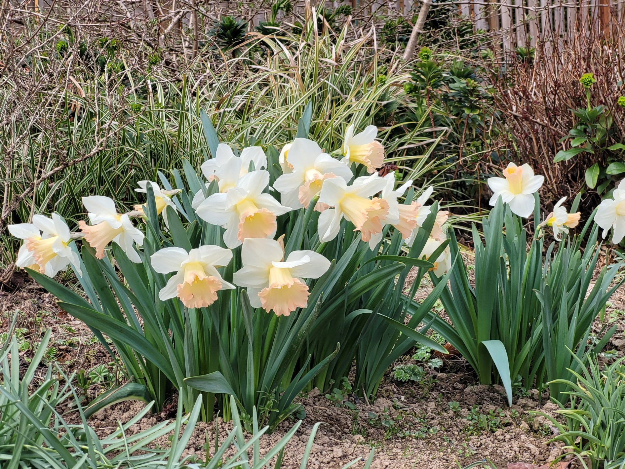 Als Neu- und dann Gleich-Nochmal-Besteller habe ich letztes Jahr jeweils zwei nette Narzissen zusätzlich bekommen. Vergraben hab ich alles dann mal wieder reichlich spät, weswegen ich bei denen von Fluwel noch nichts zur Sortenechtheit sagen kann, sind noch knospig. Von woanders ist eine als weißkronige/gelbe Trompete bestellte nun gelbkronig mit Orange. Hübsch aber wenns schon wieder so anfängt... Immer noch besser als die, die ebenmäßig weiß gefüllt hätte blühen sollen und tatsächlich die seltsame wie ein geplatztes pochiertes Ei aussehende `Replete´ geworden ist. Da bekomme ich so richtig Lustzwerggarten hat geschrieben: ↑30. Mär 2025, 17:55 was muss man tun bzw. wieviel bestellen um bei fluwel eine zugabe zu bekommen?!