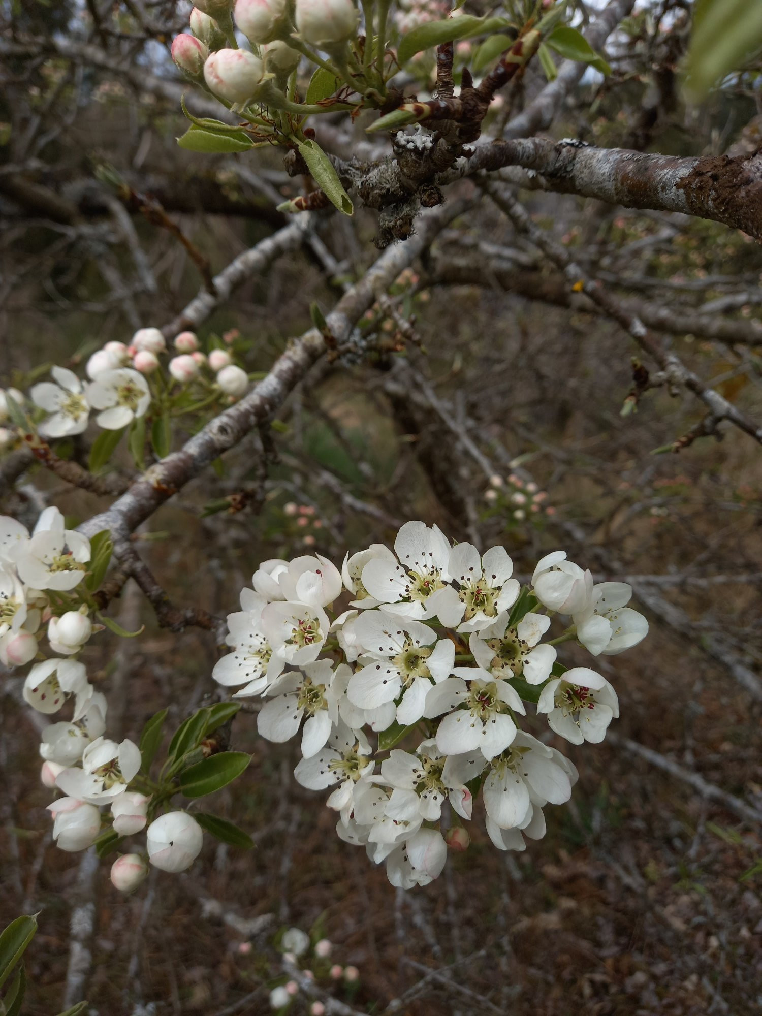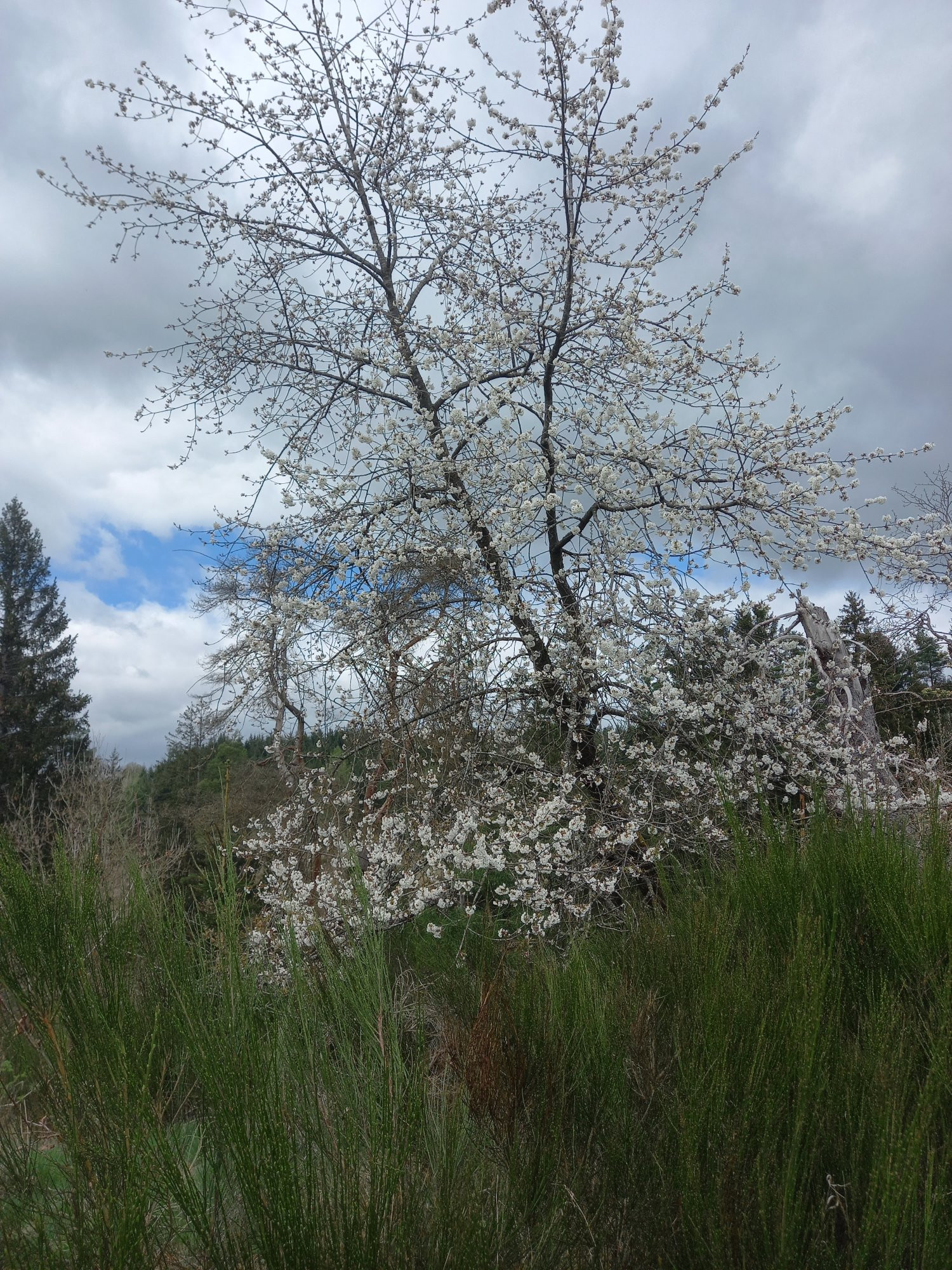 Bei mir blühen jetzt die Birnen. Das schöne ist, alle gleichzeitig. Belgische Blutbirne (AT), Clapps Liebling, Nashi und Aroma Spur. Blutbirne ist in ihrer ersten Vollblüte. Clapps hatte sie letztes Jahr, aber hat nichts angesetzt. Spätfrost. Dafür hat sie dieses Jahr kaum Blüten. Aroma Spur mit seinen 30 cm trägt reichlich. Sie war mal größer, ich musste sie wegen Krebses herunterschneiden.