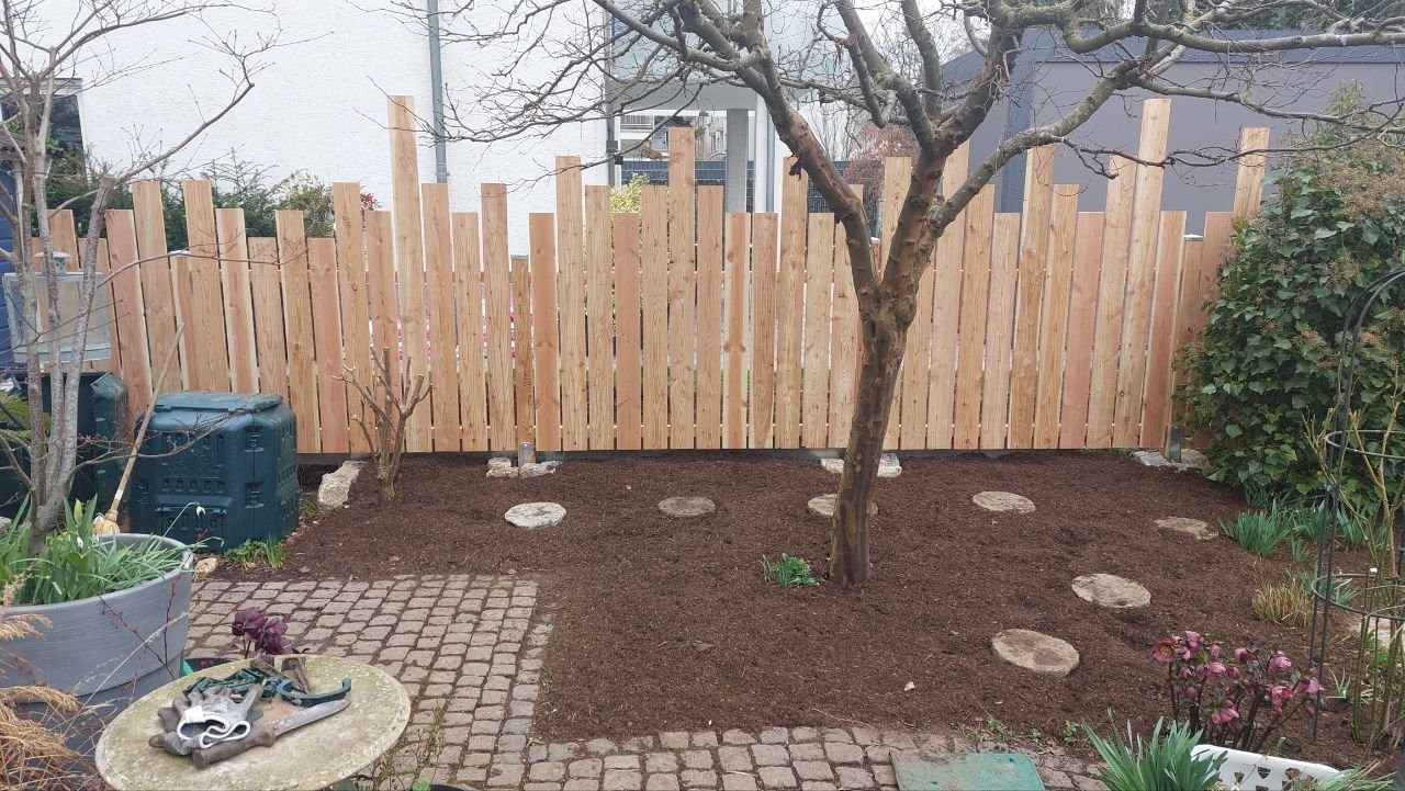 Im Hintergrund sieht man, dass der Zaun auch hinter der Quitte fortgeführt wurde. Mein letztes Projekt...