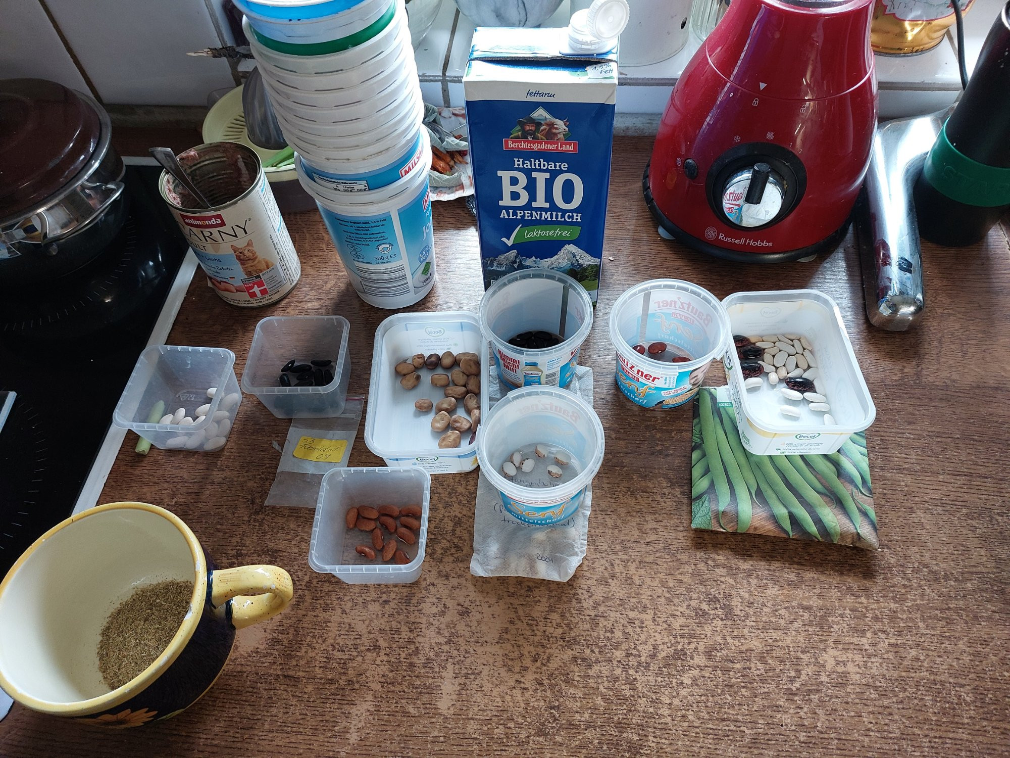 Heute wird gebeizt, heute Abend sollen die Stangenbohnen in die Joghurtbecher
