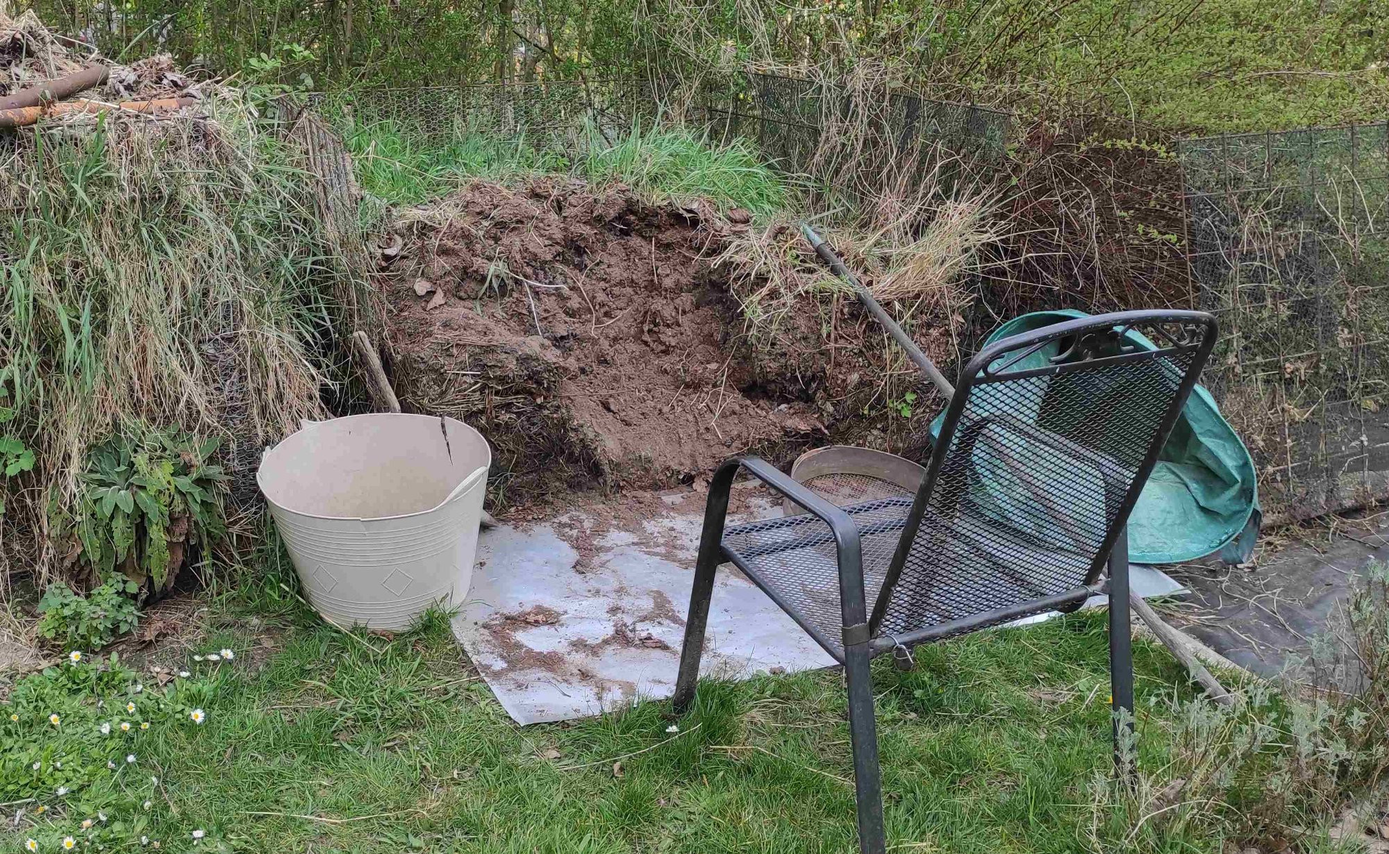 Tatsächlich muss ich nun auch den nächsten Komposthaufen angehen. Die Erde reicht sonst nicht für das neue Irisbeet.