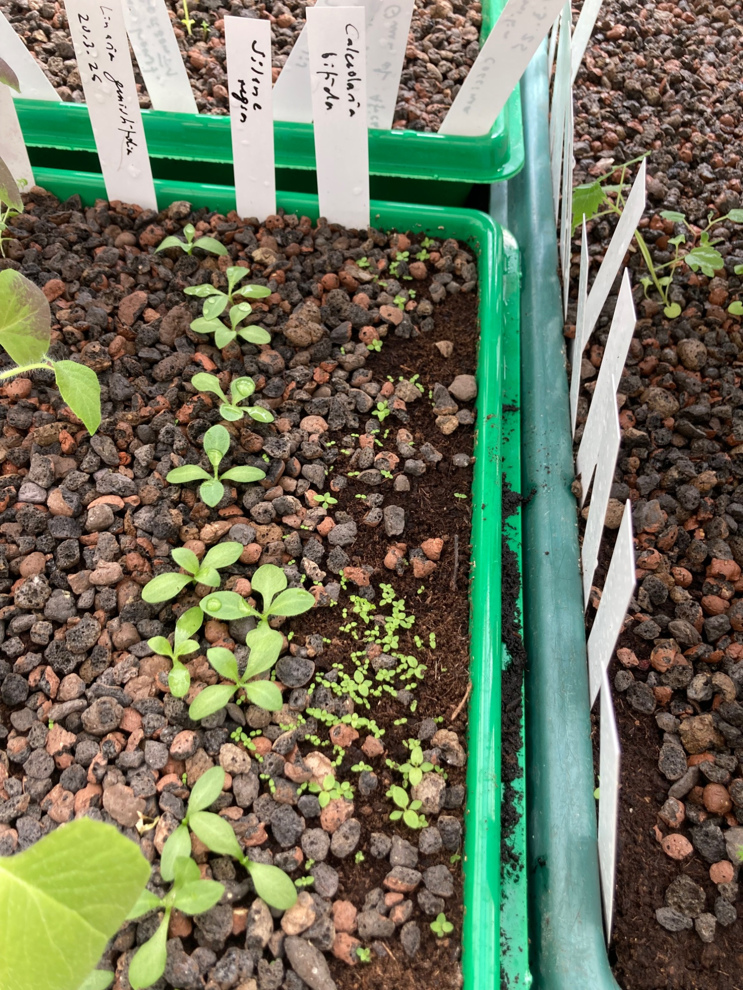 Seseli globiferum, Digitalis lantana. Mussten teilweise draußen aussäen, was in etwas unordentliche Reihen resultierte.