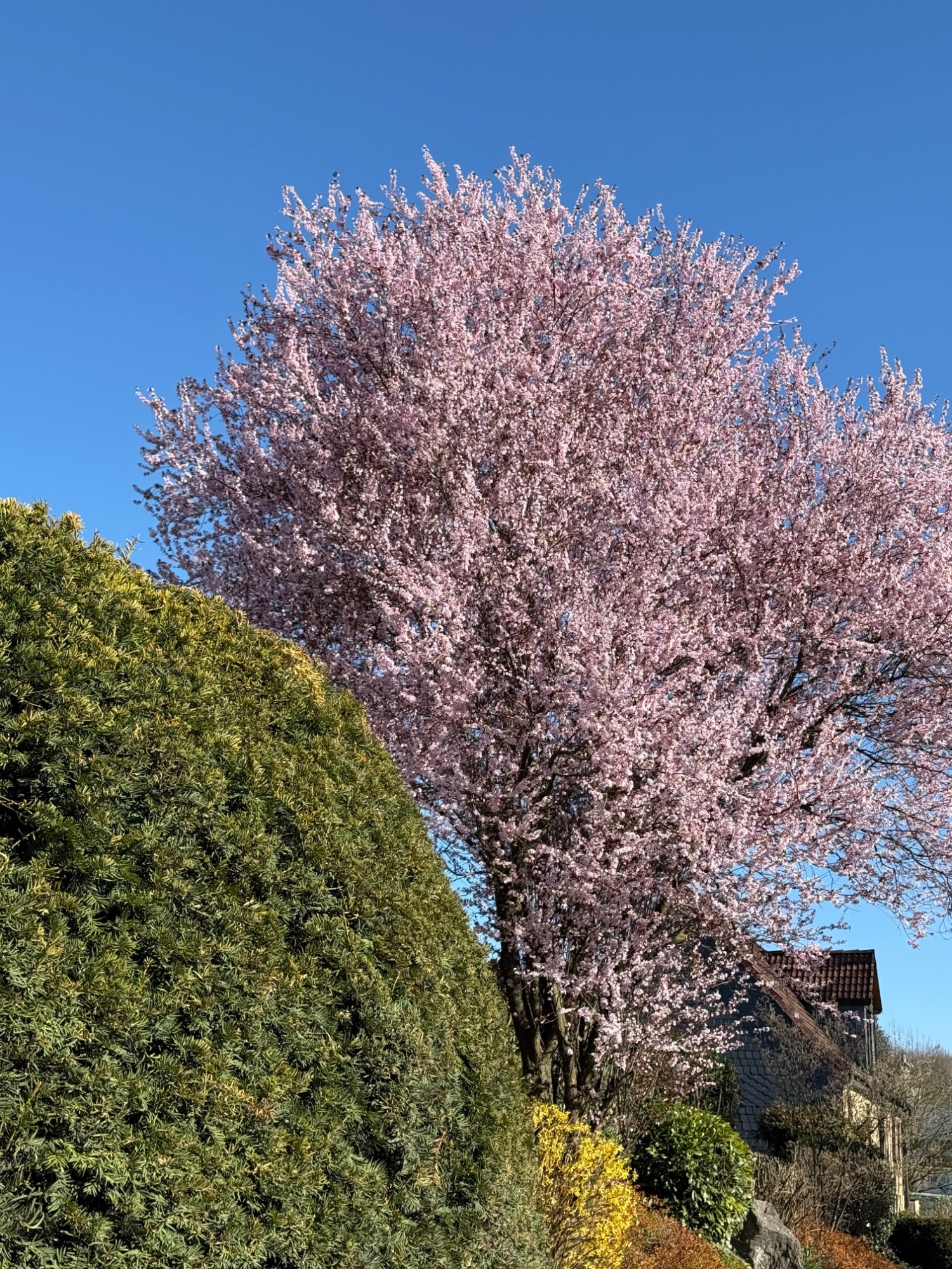 Gibt auch ja einige heimische oder alte Kulturpflanzen der Gattung Prunus die ich aktuell als auffallend empfinde wie diese hier: Blutpflaume sicherlich kein einheimischer Baum aber mittlerweile eingebürgert und immerhin aus Südosteruopa: