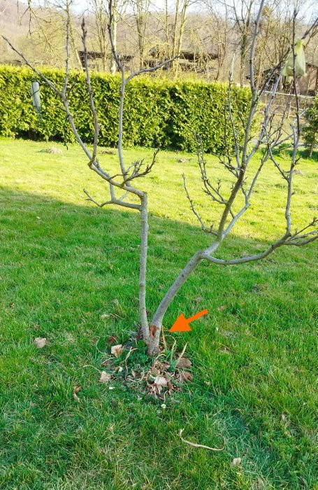 Was noch keiner angesprochen hat, aber vielleicht geht es auch nur mir so? Die Verzweigung am Fuß des Stämmchens ist ein Druckzwiesel. Wenn der Baum größer wird, bricht das irgendwann. Außerdem sieht es für mich fast aus wie ein Unterlagentrieb, kann aber auch täuschen. Ich jedenfalls würde den raus nehmen, dann wächst der Rest auch wieder stärker. Viel Zuwachs ist ja nicht zu sehen. Das verbleibende Stämmchen etwas gerade binden. Schnittwunden mit Kupferpräparat behandeln (wenn man hat) und hoffen. Meine Zwetschge behandle ich nach dem Schnitt im Spätwinter/Frühjahr immer mit meinem Restbestand Neudorf Atempo. seit einigen Jahren an Schnittstellen jedenfalls kein Pseudomonas mehr. Ab und an mal an Kurztrieben, die schneide ich dann auch raus.