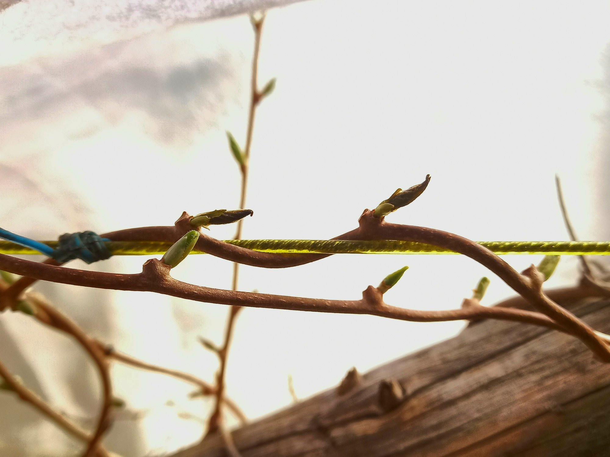 Keine Schäden haben z.B. die Tafeltrauben. Knospen sind auf, aber das Grün bzw. Rot hält einiges aus.