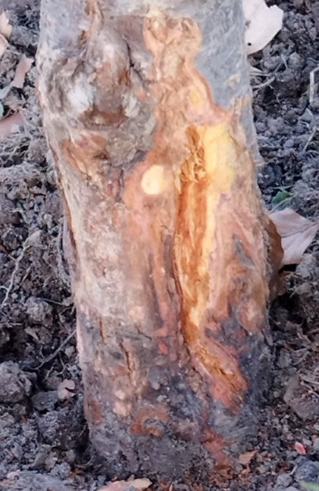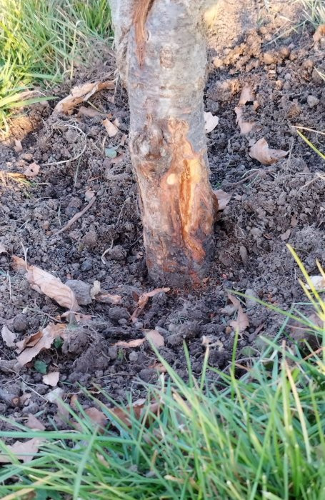 Aber die Rinde ist doch fast ganz ab unten, oder sieht das nur so aus? Kann es sein, das der Baum schlicht zu tief gesetzt wurde?
