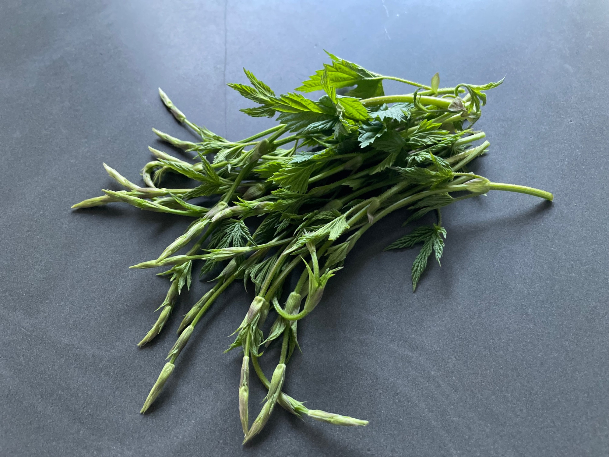 Bei uns gab es gestern orientalisch gewürzte Frikadellen, Humus mit frischen Hopfensprossen.