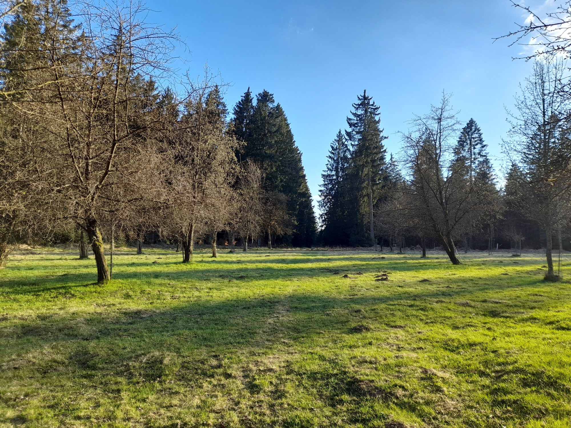 Im nächsten Abschnitt muss ich ein Brombeerauge ausmähen. Oder auszäunen, wenn mich die Zeit überholt. Mein Mann unkt was von 2 Tagen. Könnte er Recht haben. Ach was. Mit Wwooferin sind wir doppelt stark