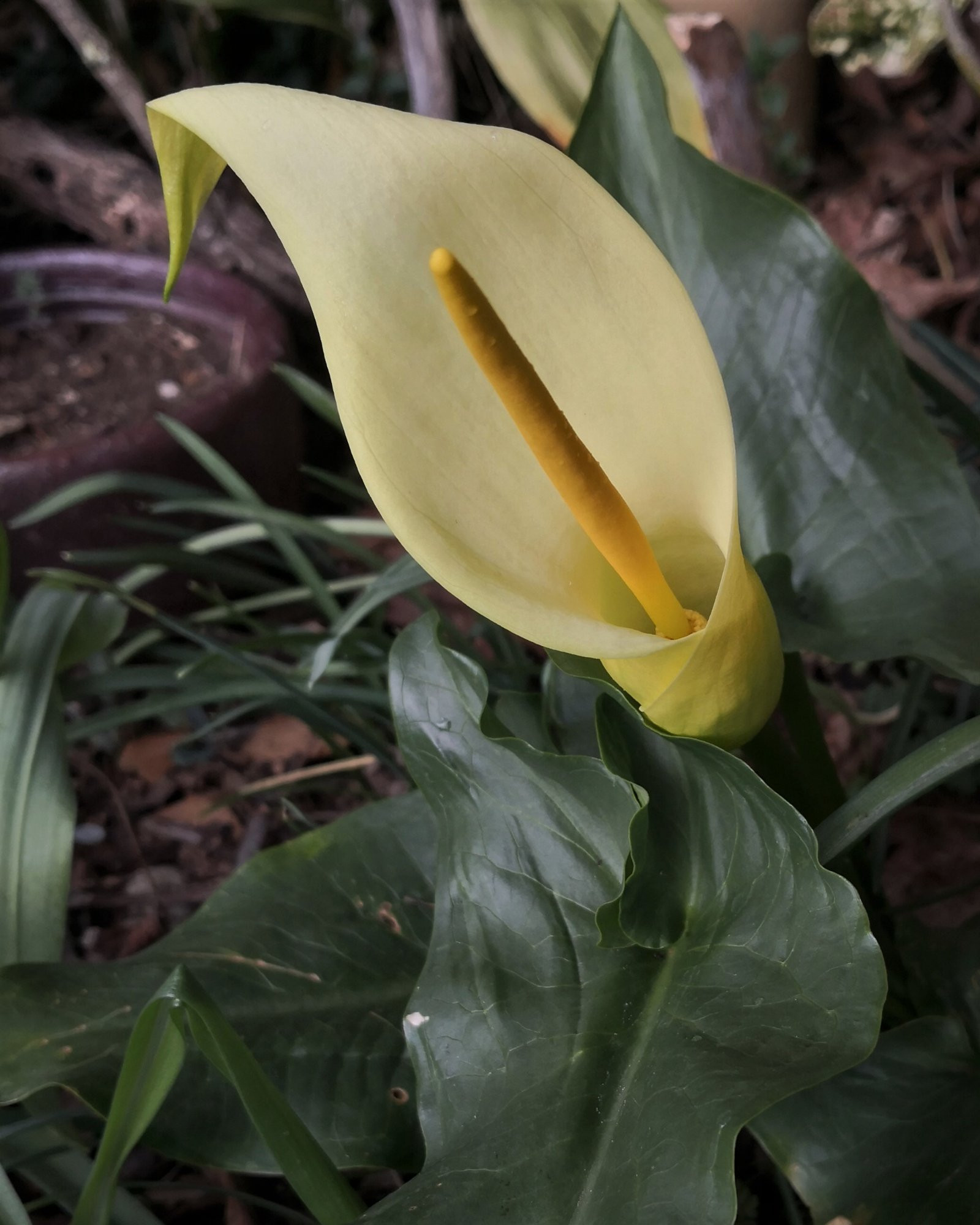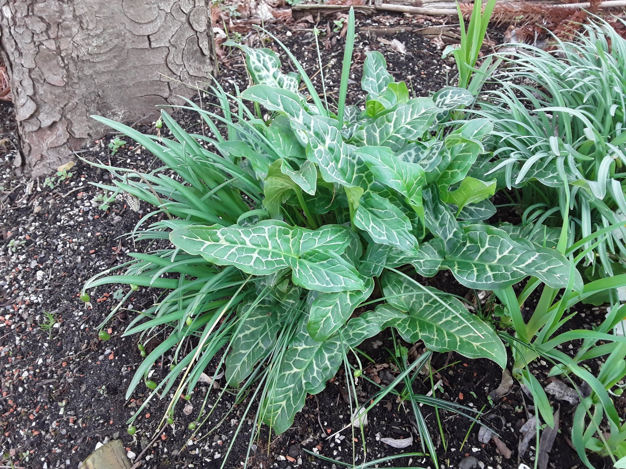Arum creticum blüht hier nicht, kann aber mit den schönen Blättern auch gefallen.