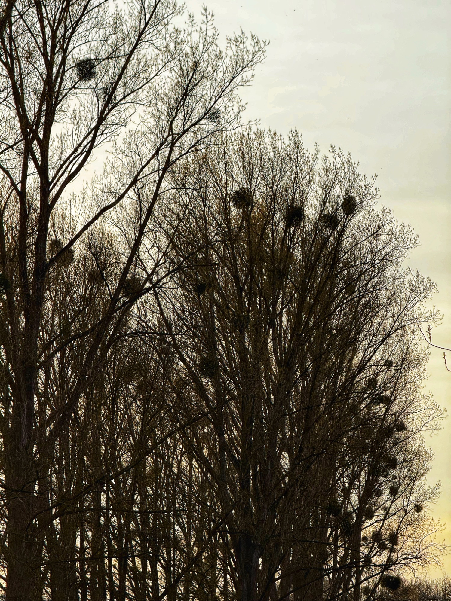 Mancher der vorbeifährt kommentiert dieses Landschaftsbild: " Oh mein Gott wie viele Vogelnester" bis man sie darüber aufklärt das es "nur" Misteln sind