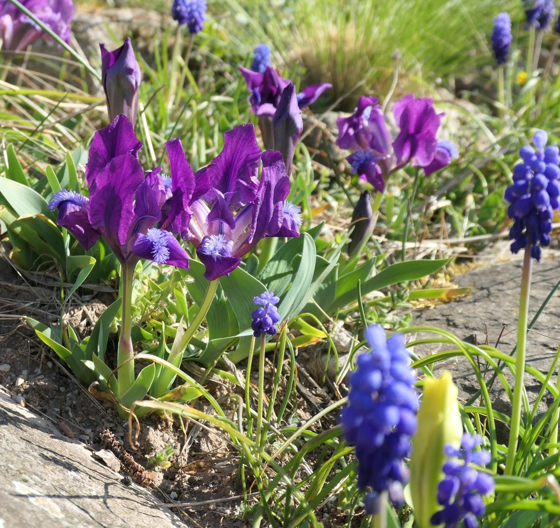 Die dunkle Iris unguicularis von Lerchenzorn wollte schon Mitte Februar blühen, nur gab es dann recht knackigen Frost und ich vergaß die Pflanze abzudecken... Jetzt blüht der zweite Satz.