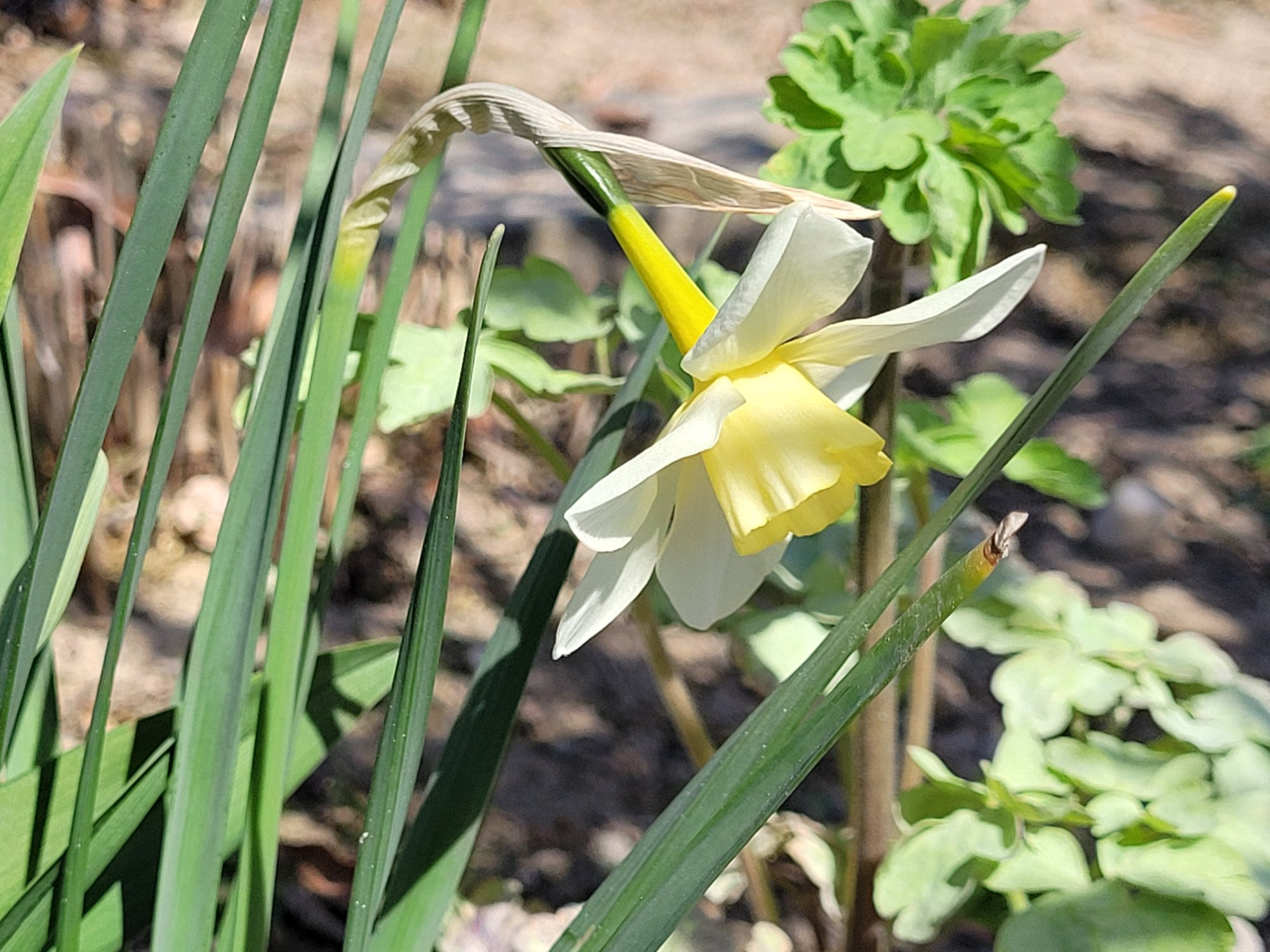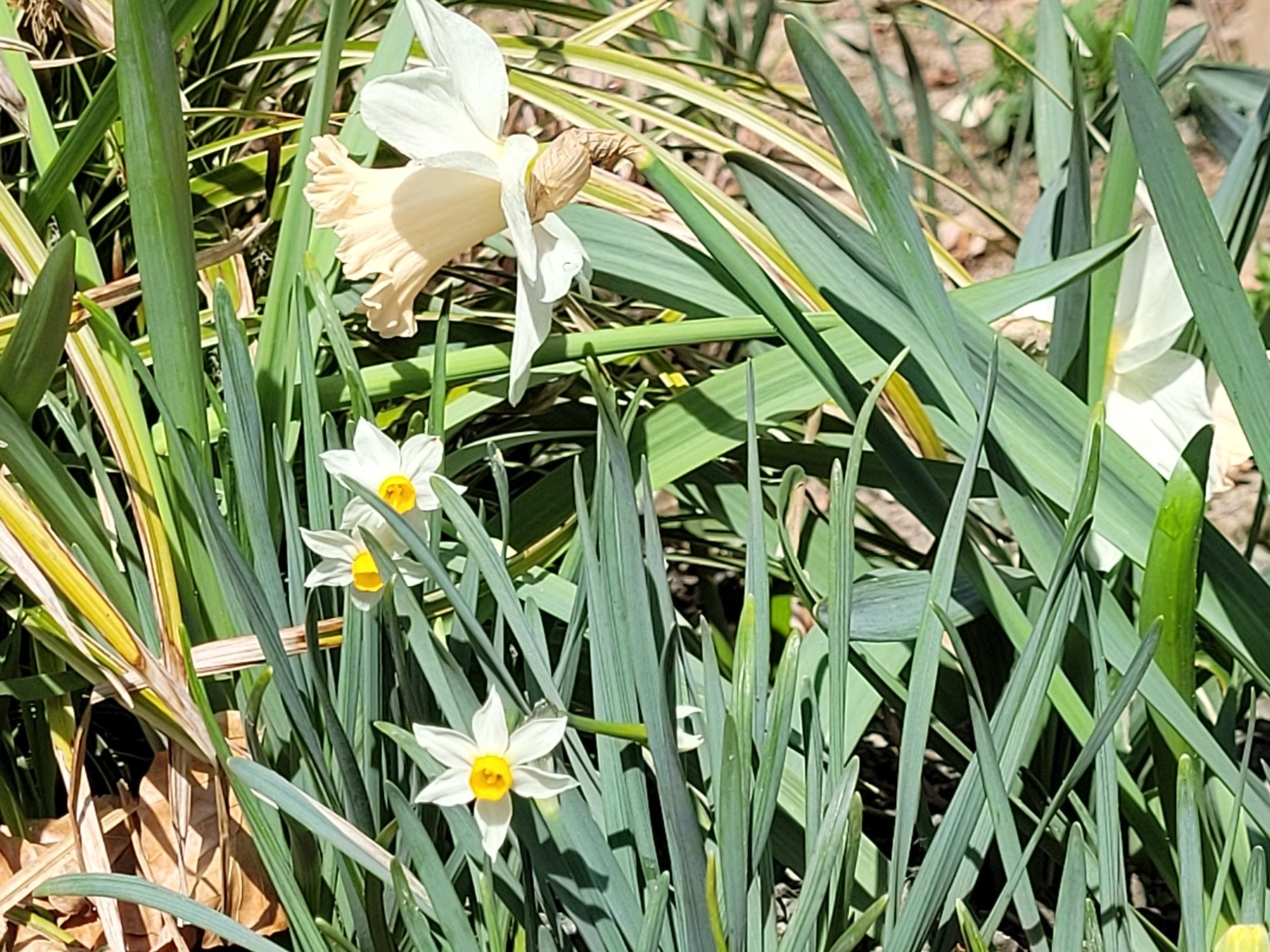 Ich mag die jetzt erst blühenden, hellen Narzissen fast noch lieber. Allerdings sind sie hier tatsächlich nicht besonders wüchsig. Besagte Thalia hält sich zwar ganz gut, vermehrt sich aber auch nicht sonderlich. Es gibt bisher immer nur ein bis zwei Stängel, aber es wird kein Horst. Ich hatte mal eine ganze Menge davon ins Präriebeet gesetzt, wo sie sich zwar wacker hält aber kaum Wirkung entfaltet.