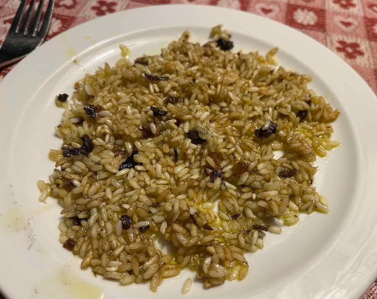 Scallops leicht mit Knoblauch, Chili und Olivenöl mariniert und mit Rosmarin und etwas Butter gebraten sowie Steinpilz-Risotto zur "Petite Révolution"