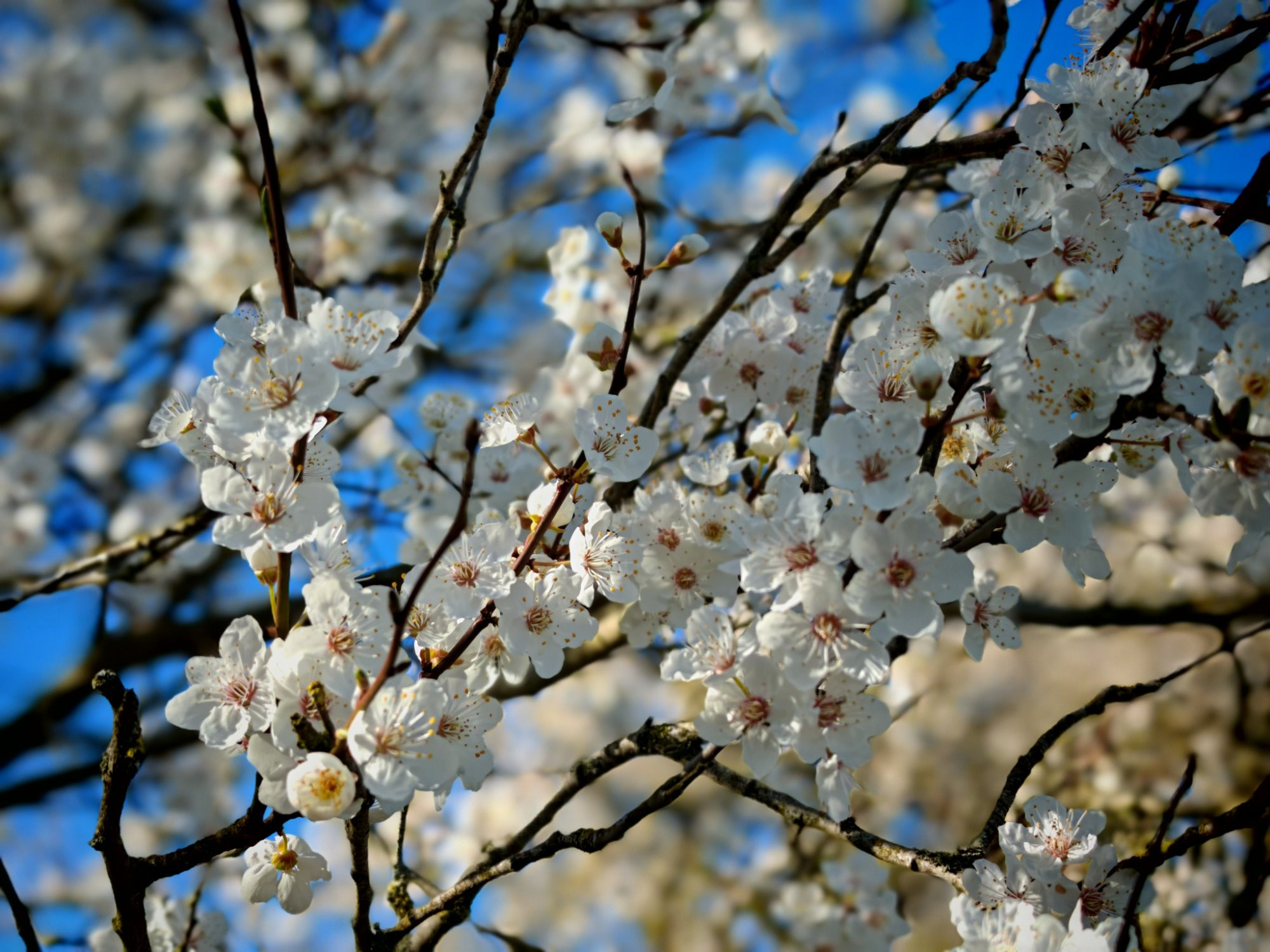 Alles ist noch im Werden, aber ein paar Einblicke kann ich zeigen. Derzeit ist es vor allem ein Wild-, Kirsch-, und Blutpflaumengeblühe