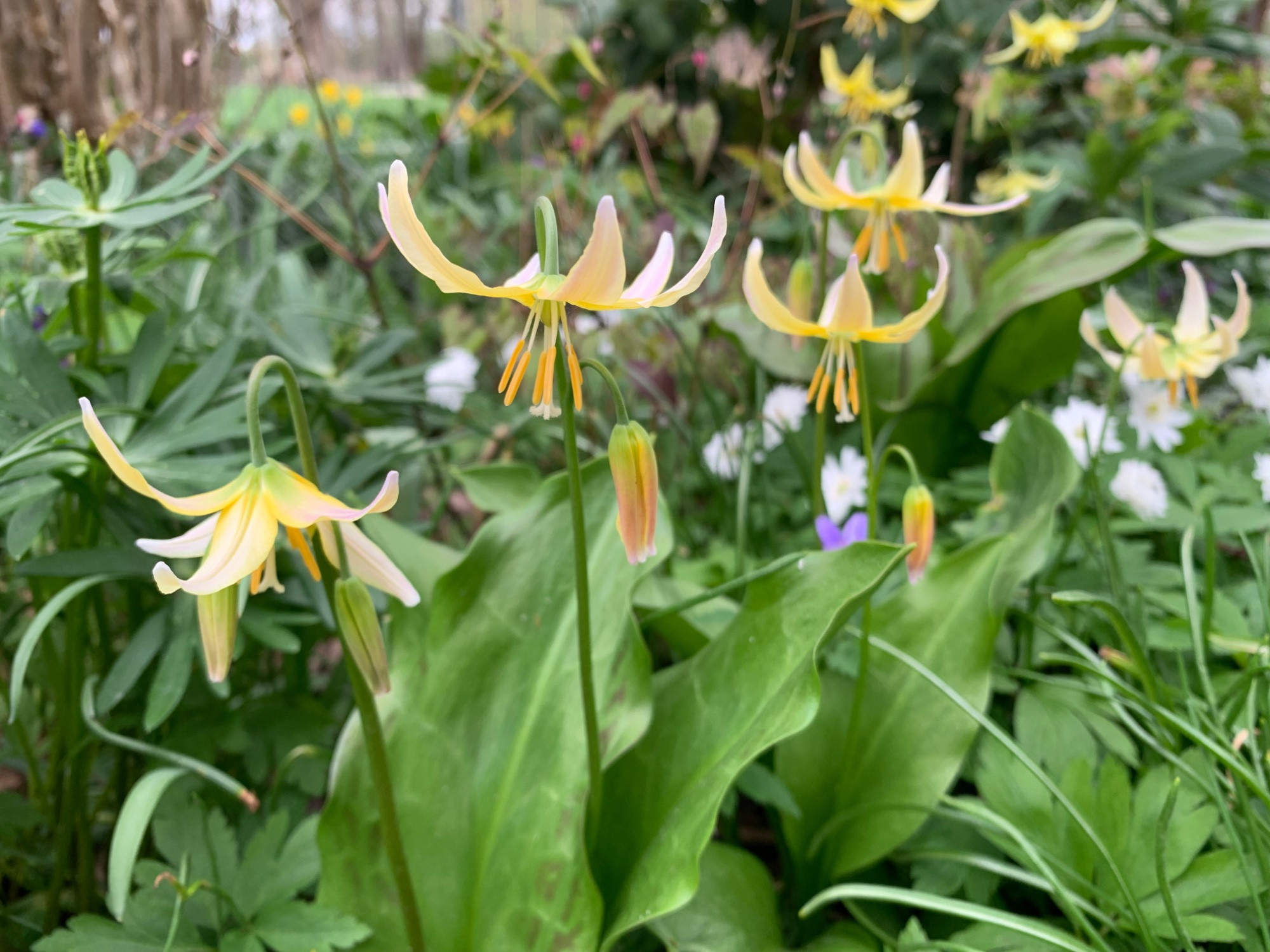 Erythronium ‚Joanna‘, Glaucidium palmatum steht unter einem Tisch, also ziemlich trocken. Jedes Jahr legt es ein wenig zu. Lathyrus vernus, ein Sämling von Pflanze & Co. vom Berliner Staudenmarkt im letzten Jahr.