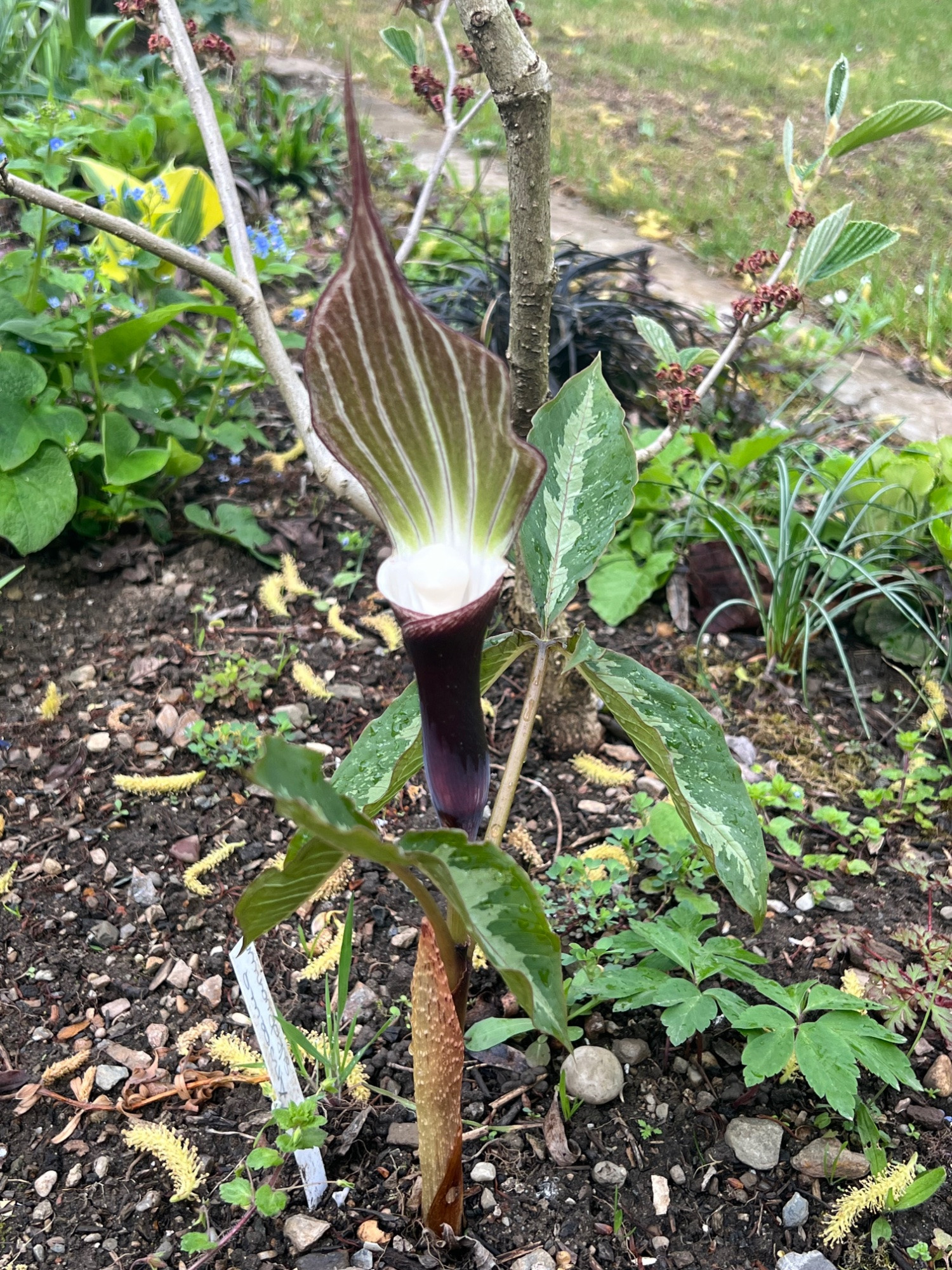 Hier blüht auch eine Arisaema, als A. candidissimum bekommen. Arisaema amurense kommt wohl eher hin