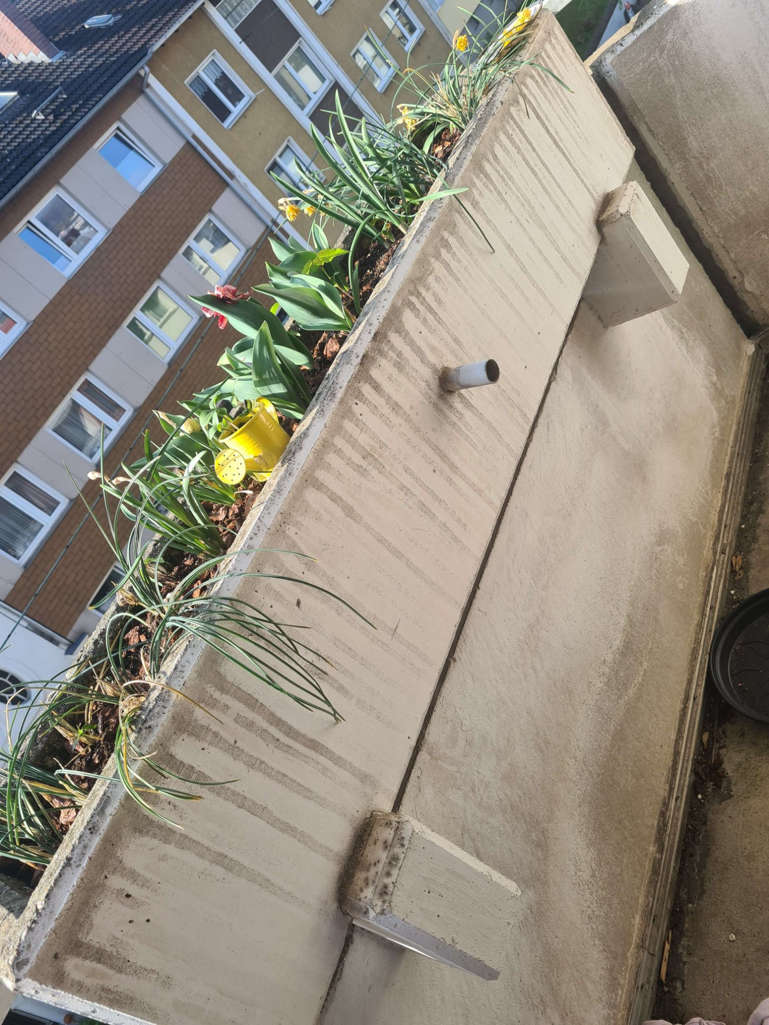 4. Kann ich ein paar der Setzlinge (Basilikum oder diverse Bienenfutterpflanzen) auch zu den Zwiebeln im "Balkonkübel" hinzusetzen, oder sollten lieber alle einen eigenen Topf haben? (Fotos siehe unten)