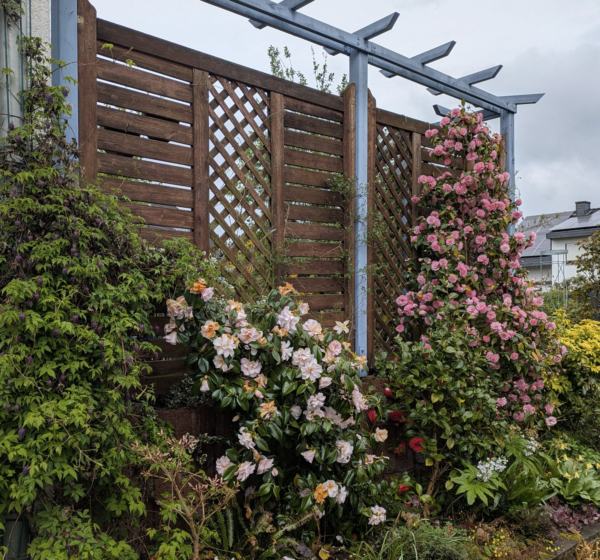 Mit Jules zahlreichen Kostbarkeiten kann und will ich auch gar nicht mit halten. Ich bin schon froh, dass einige Kamelien all die Jahre unser wenig Kamelien-freundliches Klima dennoch akzeptiert haben. Der Knospenansatz war in diesem Jahr leider sehr gering.