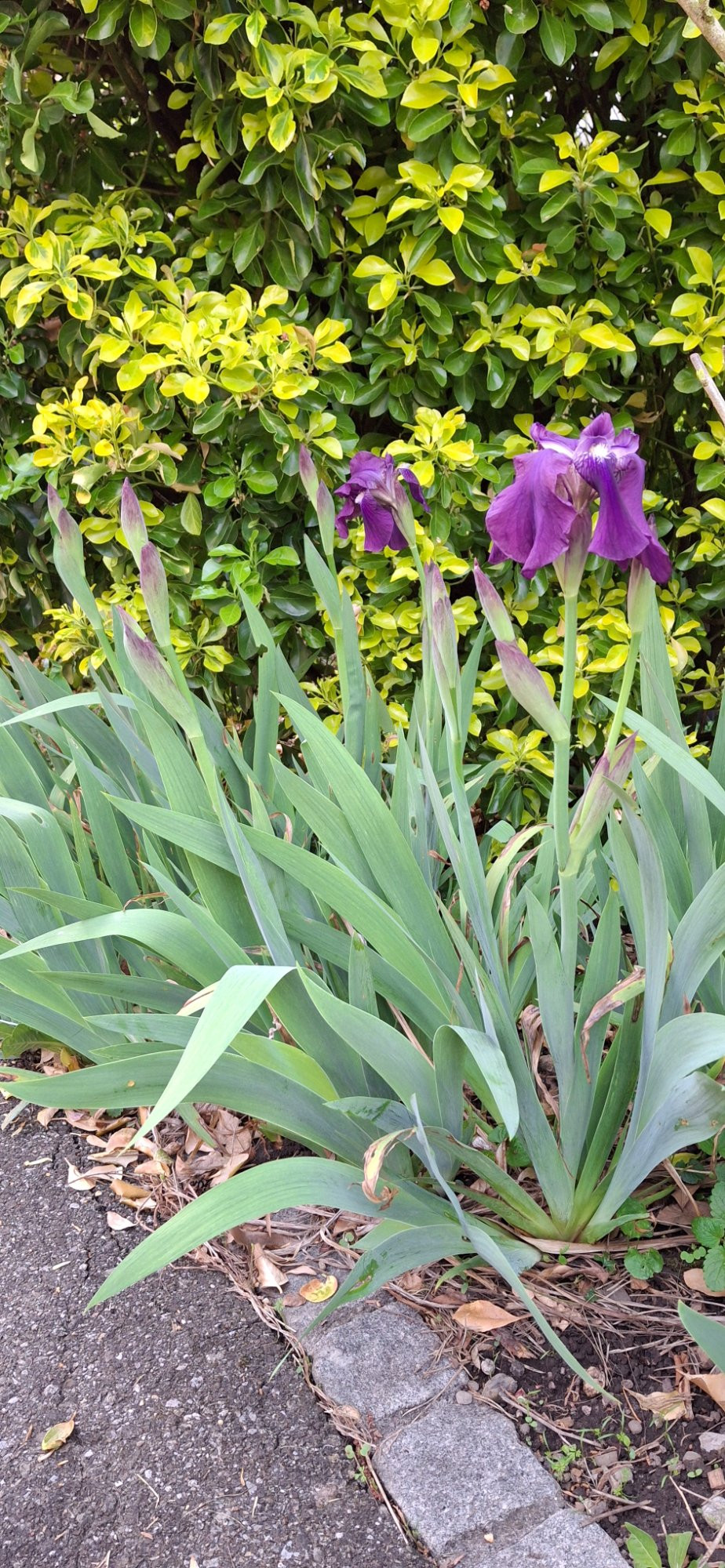 Immer die erste Iris, die blüht, und dazu noch in einem schönen dunklen violett, weswegen ich dann auch über die nicht so schöne schlabrige Form hinwegsehe. Eigentlich schöner sind die noch ungeöffneten, violett überhauchten Blütenknospen.
