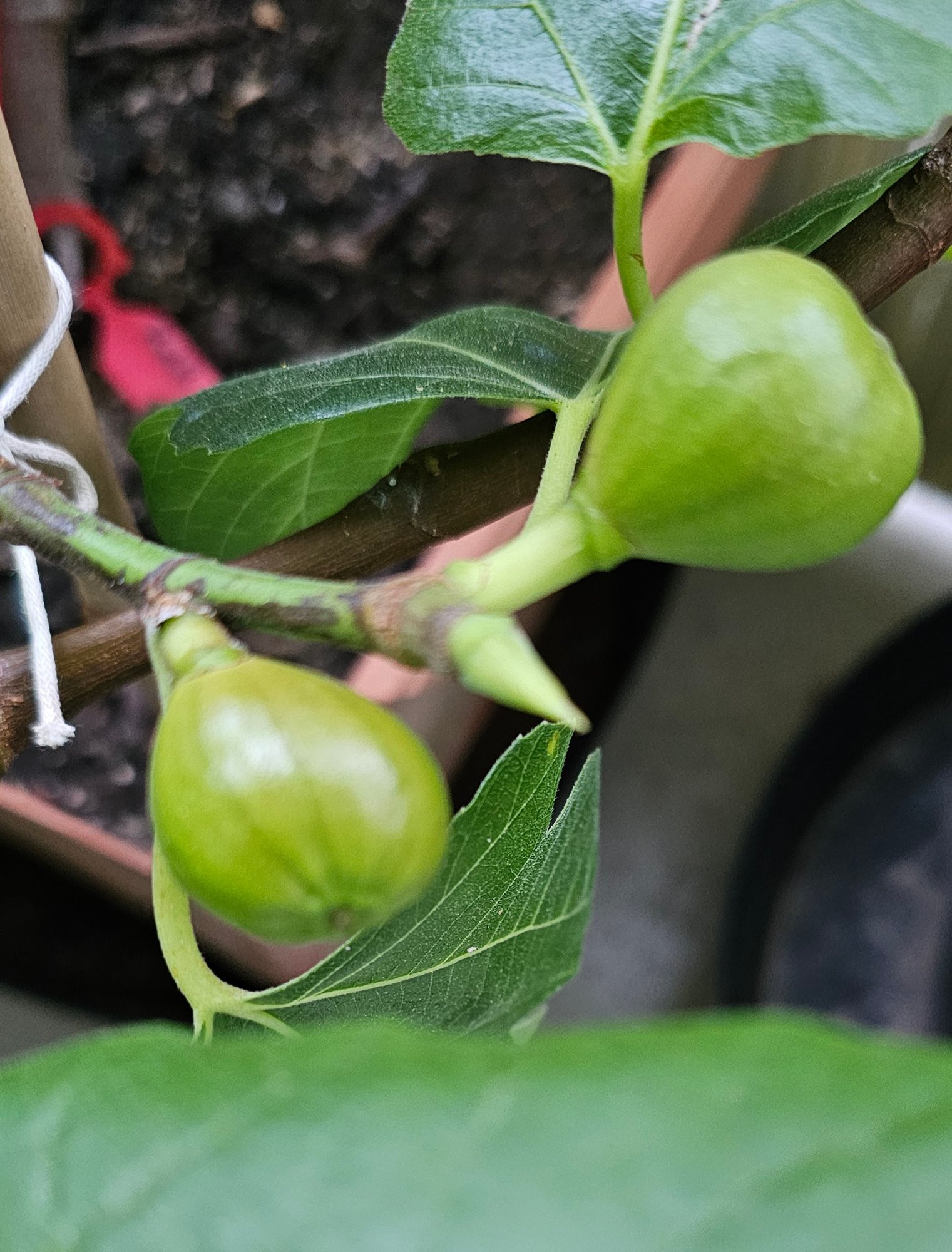Die Feige von meiner Oma ihrem Grundstück hat den ersten Winter hier im Schuppen auch gut überstanden und hat als erstes mit einer Breba Lebenszeichen gesendet. Siehe Bild