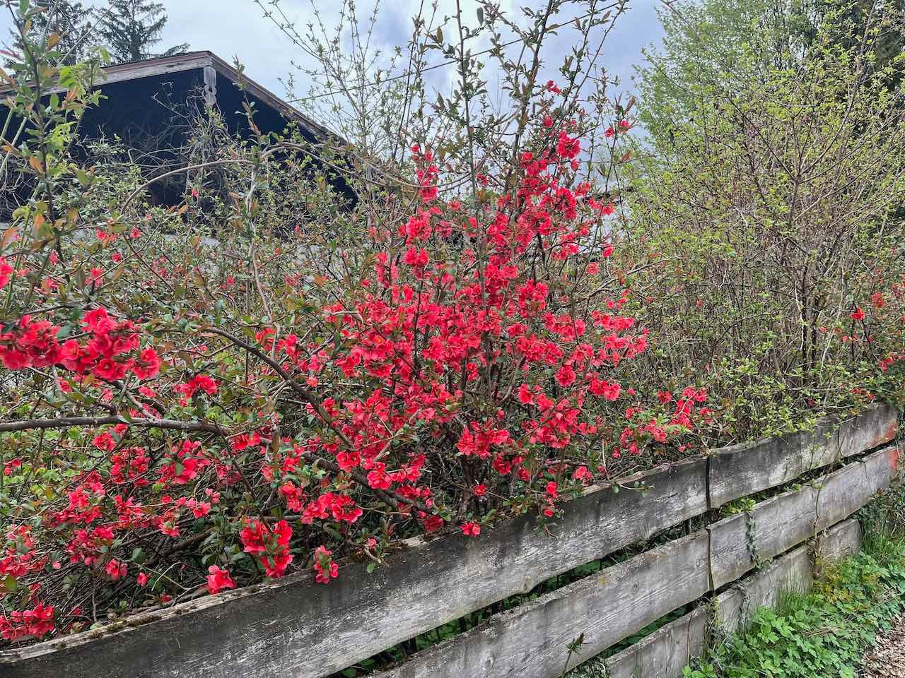 raiSch, lustig , hier gibt es auch eine alte, möglicherweise sogar zwei, Zierquitten, die die Sicht behindern. Allerdings stehen sie vor dem Stallgebäude, sind auch nicht ganz so üppig wie deine, aber dafür farblich komplett unpassend zu den dahinter stehenden Helleboren