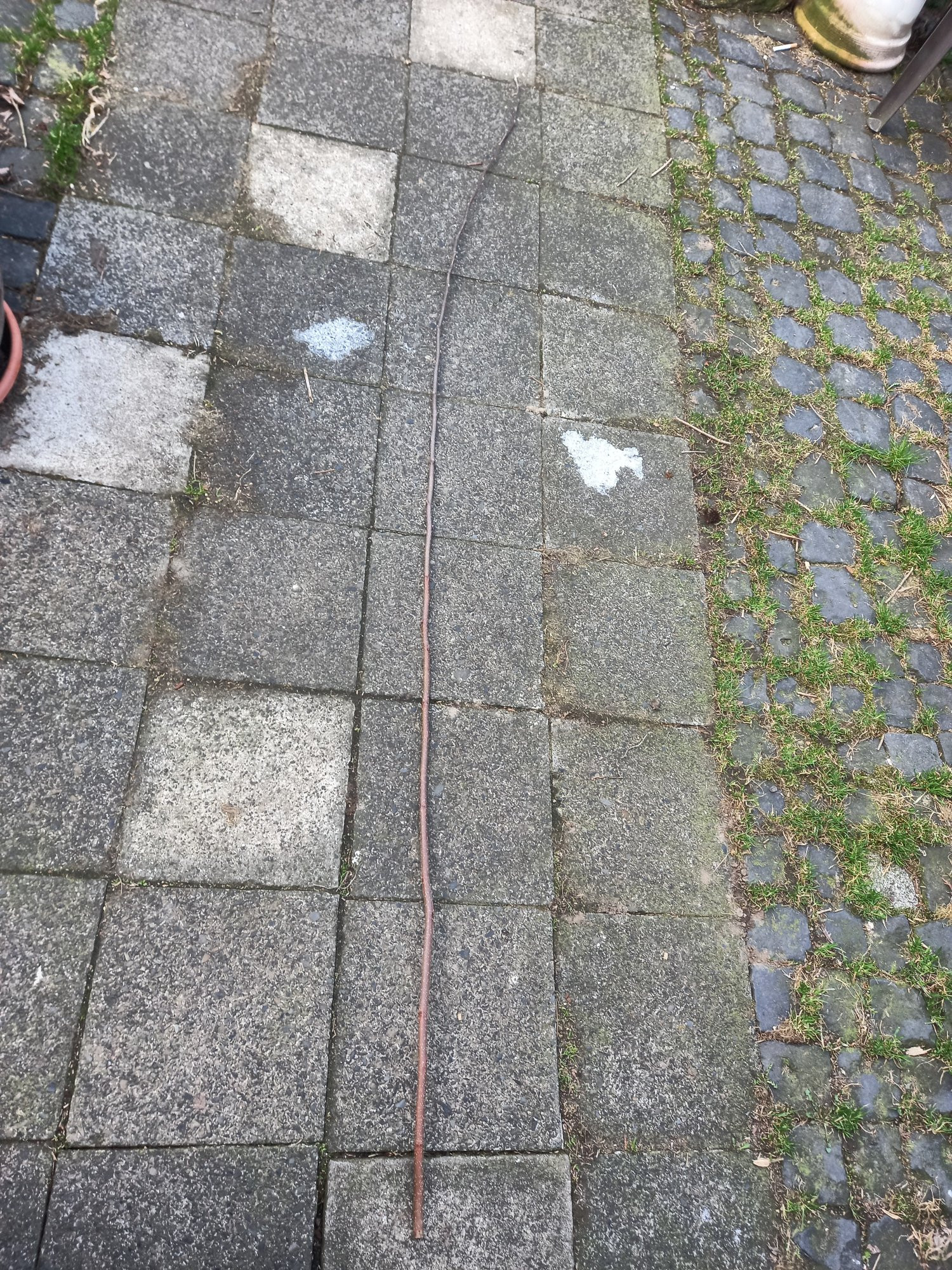 Eine Apfelbaumaussat machte einen langen Seitentrieb. 220 cm im Jahr gewachsen Strack nach oben. Ein Rekord bei mir.