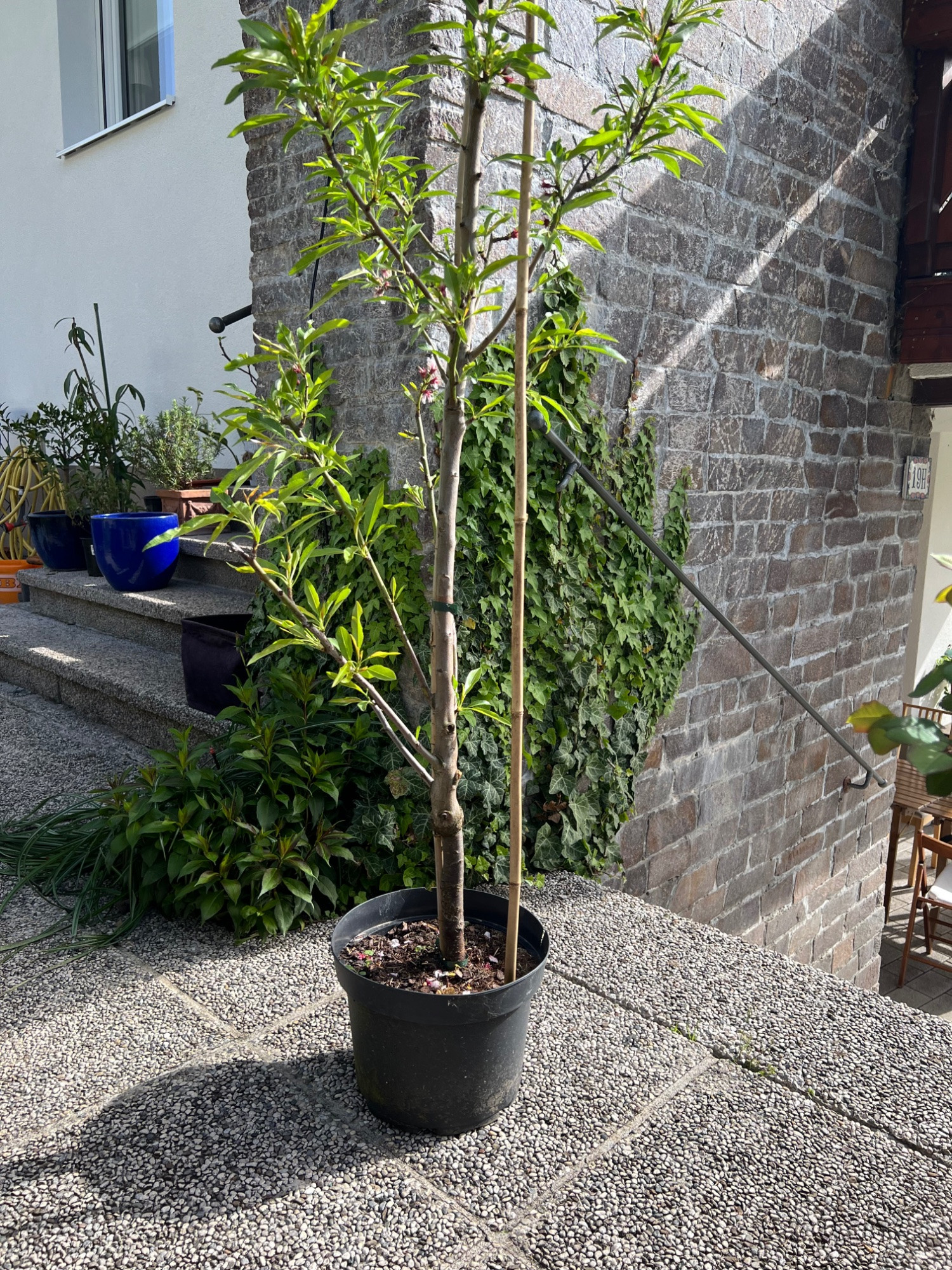 Eigentlich halb verboten in der Gartenanlage weil zu groß werdend, aber auf Pfirsichunterlage tauglich für kleine Gärten. Ist halt noch zu etablieren.