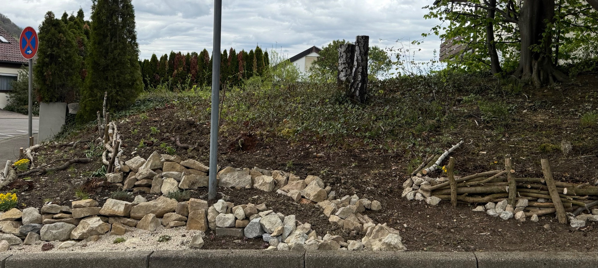 Ich würde gern auch der Streifen zwischen Mäuerchen und Bordstein bepflanzen. Aber weiß ich noch nicht, mit was. Trocken, Wurzeldruck und in diesem Bereich schon schattig. Es ist auch entfernteste Ecke. Da muss ich die Kannen weit schleppen. Nach einwachsen muss es von alleine funktionieren.