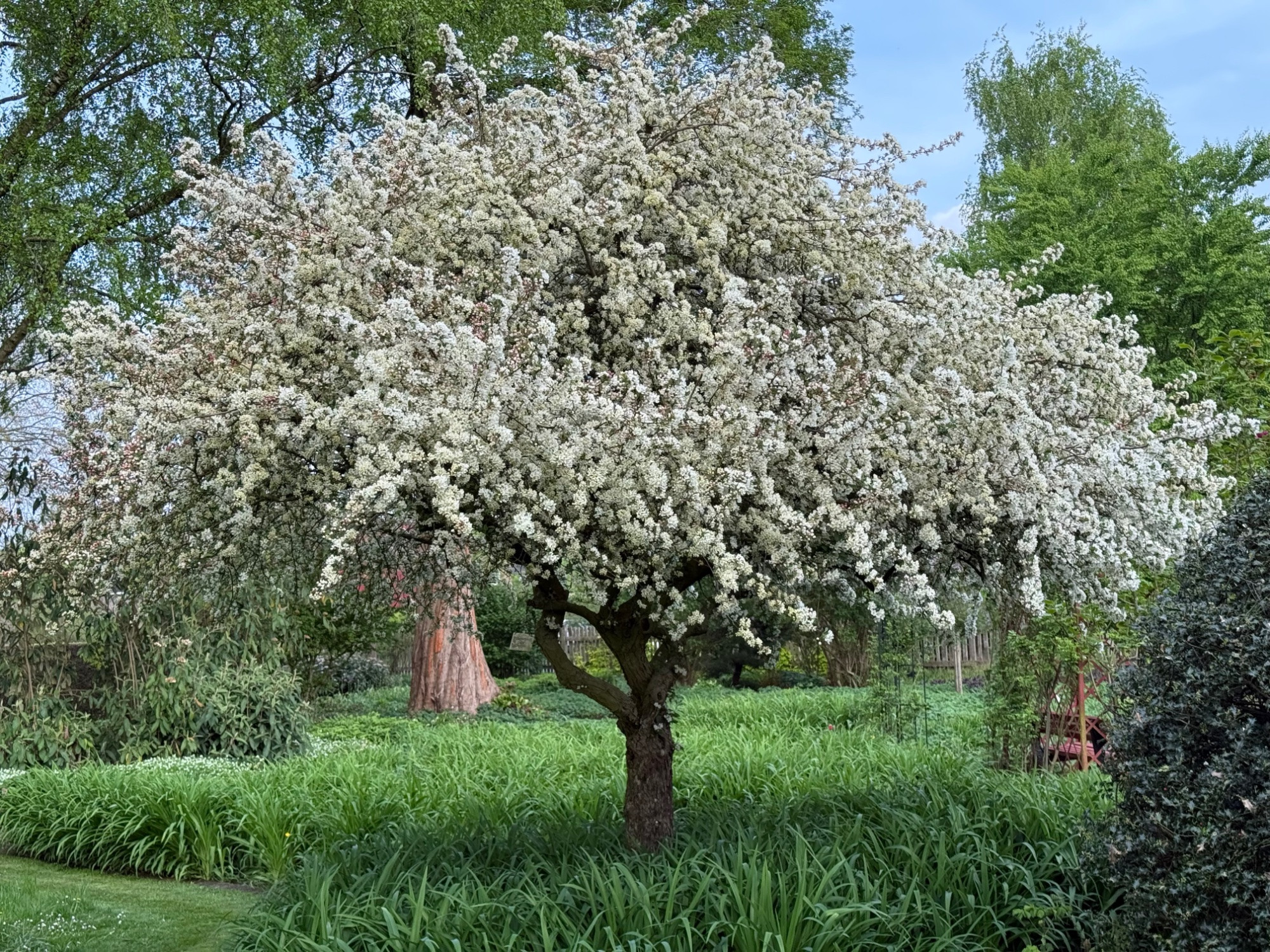 Eure Zierapfel-Fotos lassen in der Tat Sehnsüchte aufkommen, aber auch ich habe hier definitiv keinen Platz mehr, nicht mal für ein kleines Exemplar wie 'Tina'... Immerhin scheinen Zieräpfel etwas populärer als Zierkirschen zu sein, man sieht sie doch öfter in den Gärten der Neubaugebiete als erstere. Gerade die Sorten mit roten Blüten und dunklem Laub sind schon von Weitem zu sehen, aber auch die zahlreichen roten Knospen von weißblütigen Exemplaren sind ein Hingucker. :)