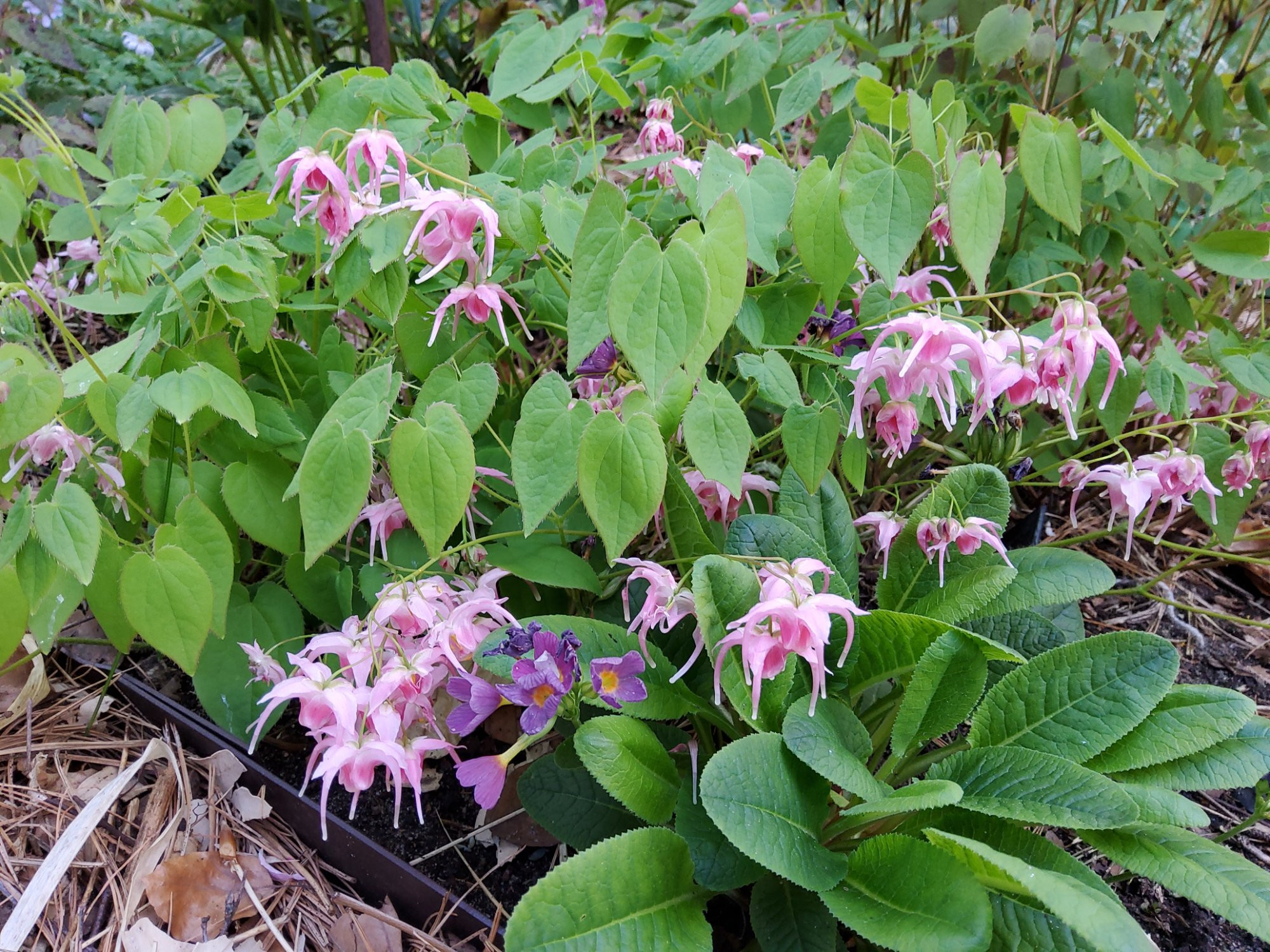 Epimedium 'Pretty in pink ' muss sich noch etablieren. Immerhin drei Blütenstände.