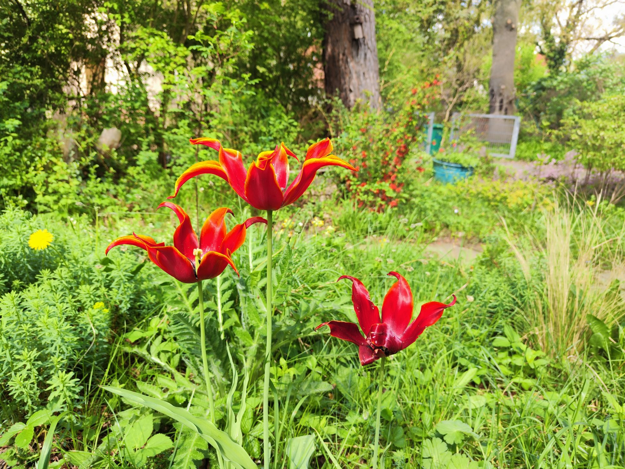 Ich würde gerne meine blühende Wildtulpen im Vorgarten zeigen, aber ausgerechnet jetzt, als die Knospen sich endlich gefärbt hatten, zeigt sich das Wetter trüb und regnerisch...