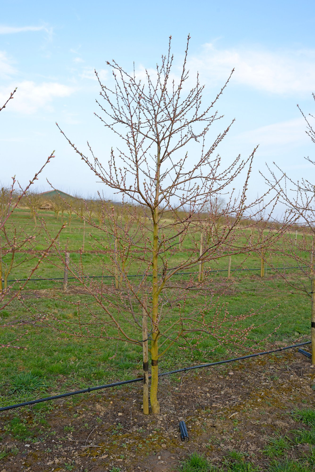 Kommerzieller Anbau, machbar ist alles... hier ein Bild vom Sonntag, Pfirsichplantage Nähe Neustadt/Weinstrasse. Man sieht an den Wurzelschossern, dass die auf Klon „INRA2“ bzw. „INRA 655/2“ stehen. Höhe <2,5m, Stamm ziemlich brutal auf 1,8m abgesäbelt und dann wieder etwas hochgewachsen.