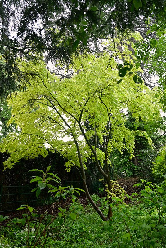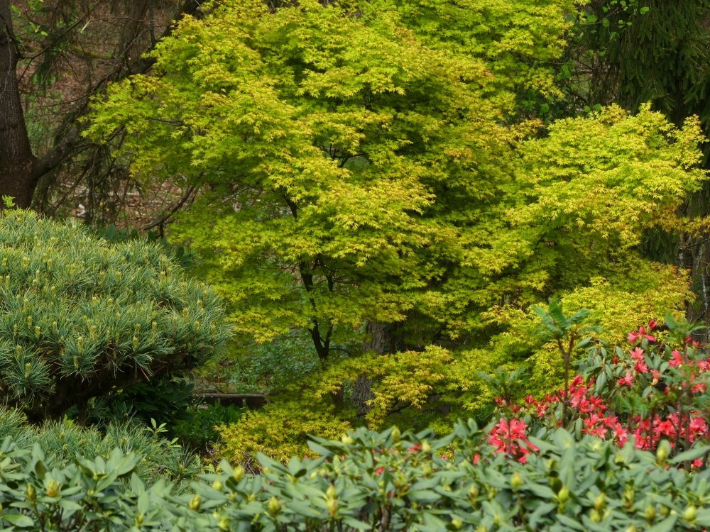 Mit eurer großen Sortenvielfalt an japanischen Ahornen kann unser Garten nicht mithalten. Die meisten befinden sich hier längst im Erwachsenenalter. Hier z.B. einige helllaubige Exemplare.